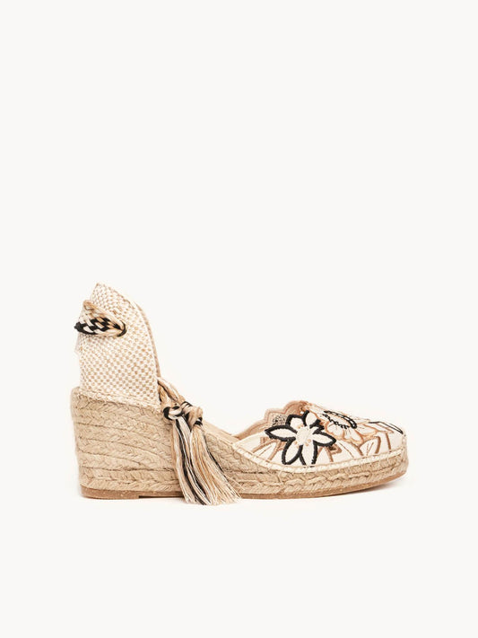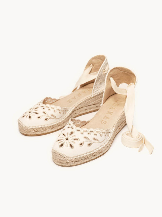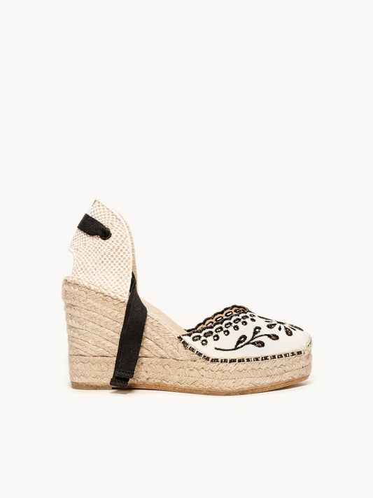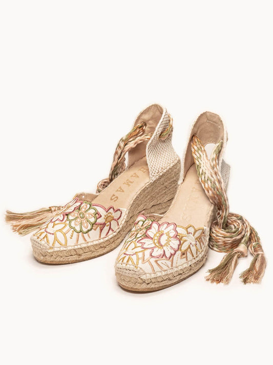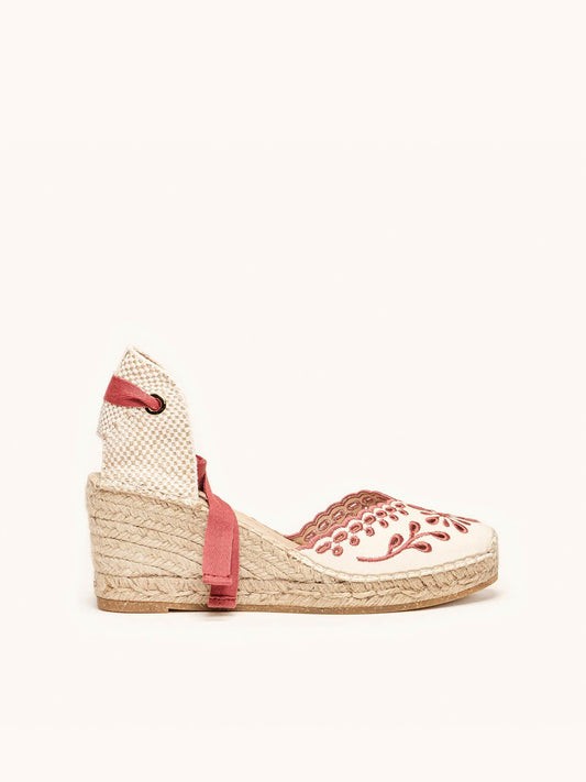 Romero Cuña Baja Lona Bordada Crudo