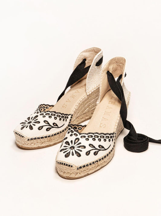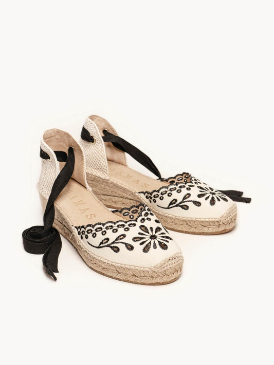 Romero Cuña Baja Lona Bordada Negro