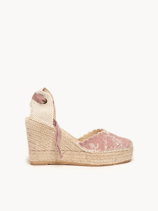 Romero Cuña Alta Vaquero Bordado Rosa