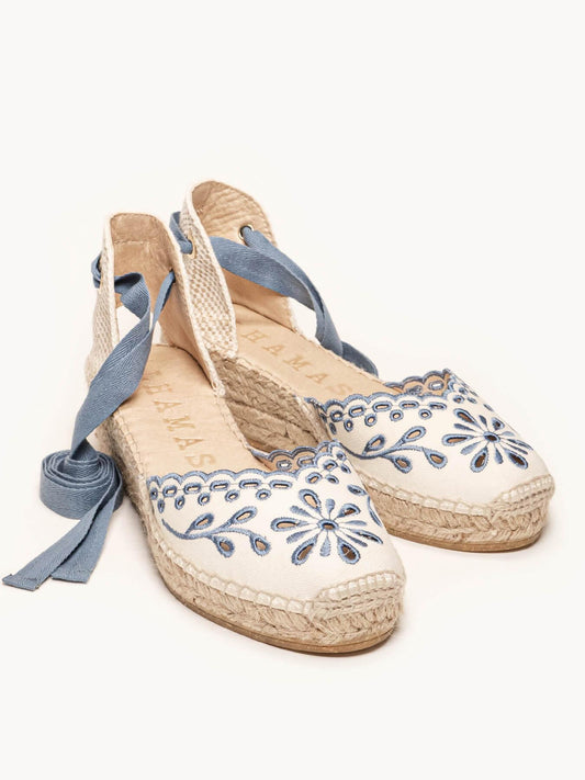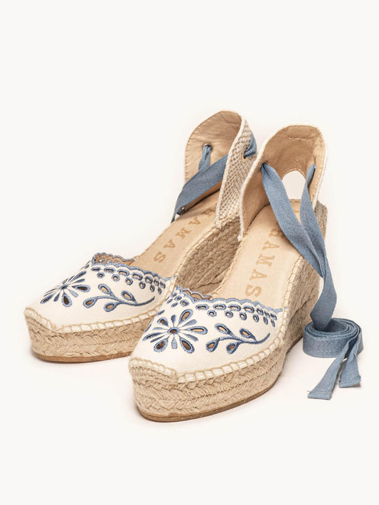 Romero Cuña Media Lona Bordada Azul Jeans