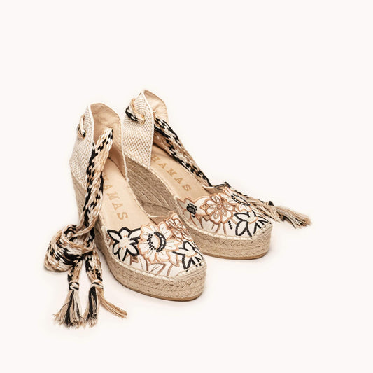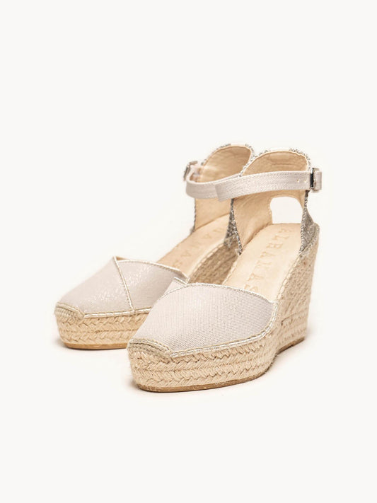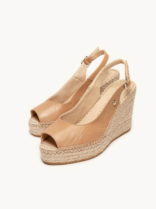 Nuestras alpargatas de cuña alta son súper cómodas! Alpargatas artesanales cosidas a mano en la Rioja por nuestros maestros artesanos, alpargatas sostenibles, con materiales reciclado, naturales, orgánicos y una selección de las mejores pieles certificadas por el "Leather Working Group". Alpargatas cómodas con cuña alta gracias a la plantilla acolchada que cubre toda la planta. Alpargatas cómodas con cuña de 10 centímetros que llevarás durante todo el día. Las alpargatas con un toque rural chic, atemporales, de fondo de armario, con un punto de color y originalidad.