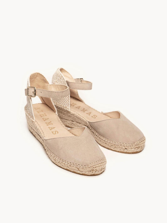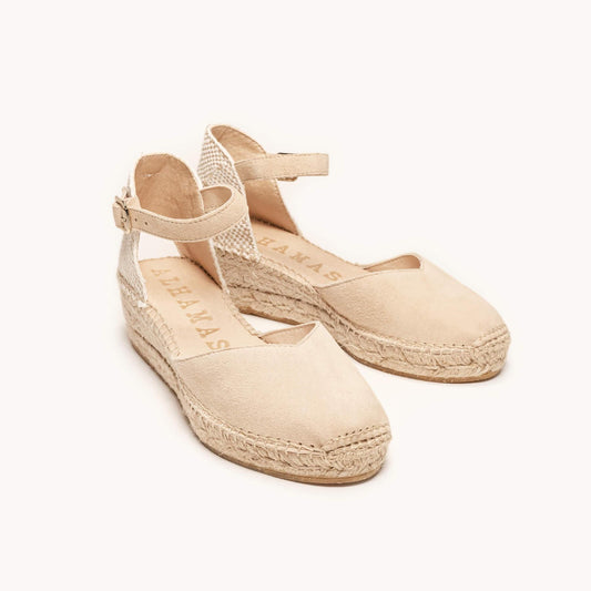 Nuestras alpargatas de cuña baja son súper cómodas! Alpargatas artesanales cosidas a mano en la Rioja por nuestros maestros artesanos, alpargatas sostenibles, con materiales reciclado, naturales, orgánicos y una selección de las mejores pieles certificadas por el "Leather Working Group". Alpargatas cómodas con cuña baja gracias a la plantilla acolchada que cubre toda la planta. Alpargatas cómodas con cuña de 5 centímetros que llevarás durante todo el día. Las alpargatas con un toque rural chic, atemporales, de fondo de armario, con un punto de color y originalidad.