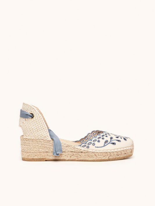 Romero Cuña Baja Lona Bordada Crudo