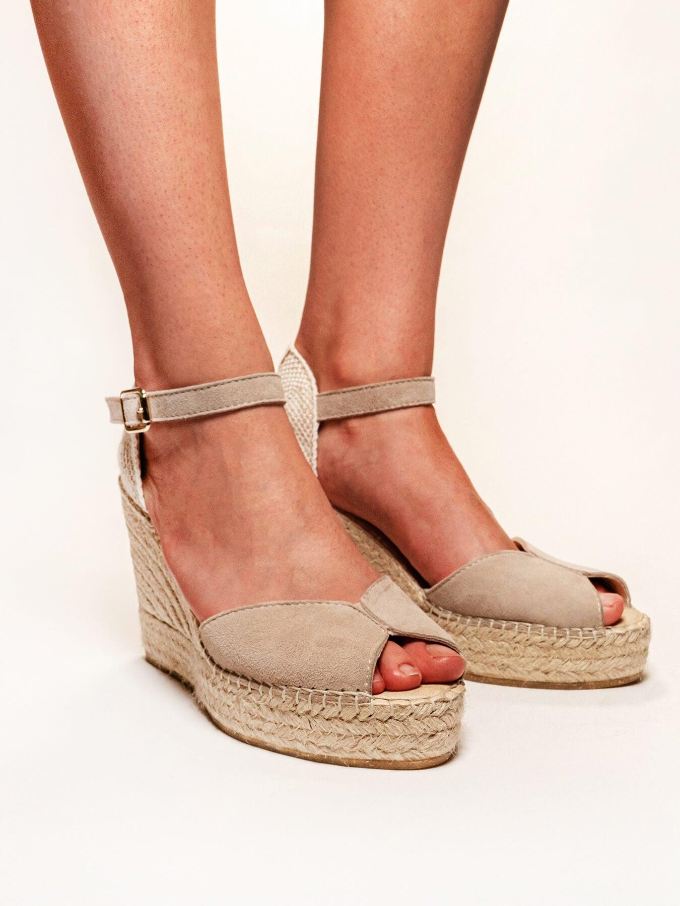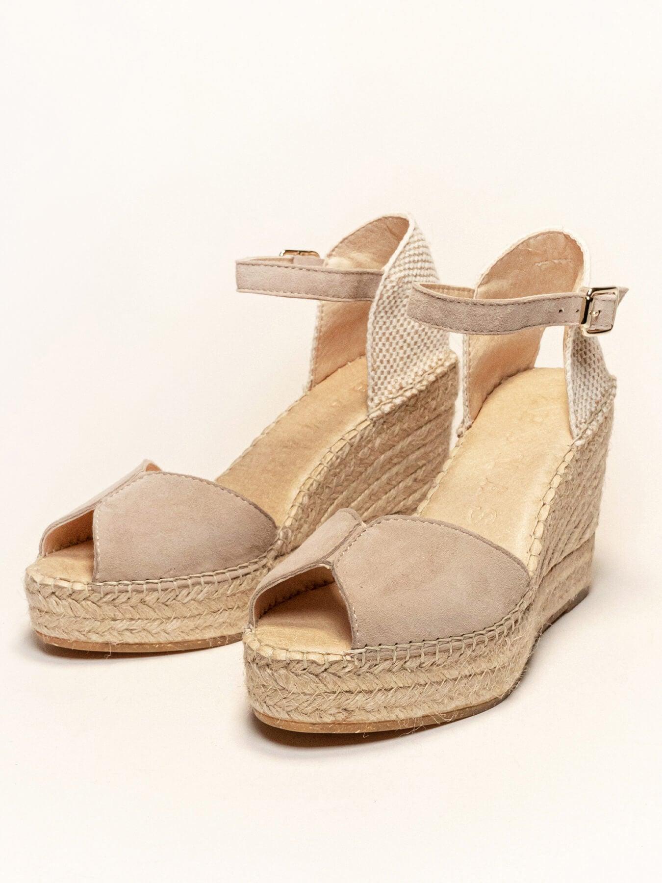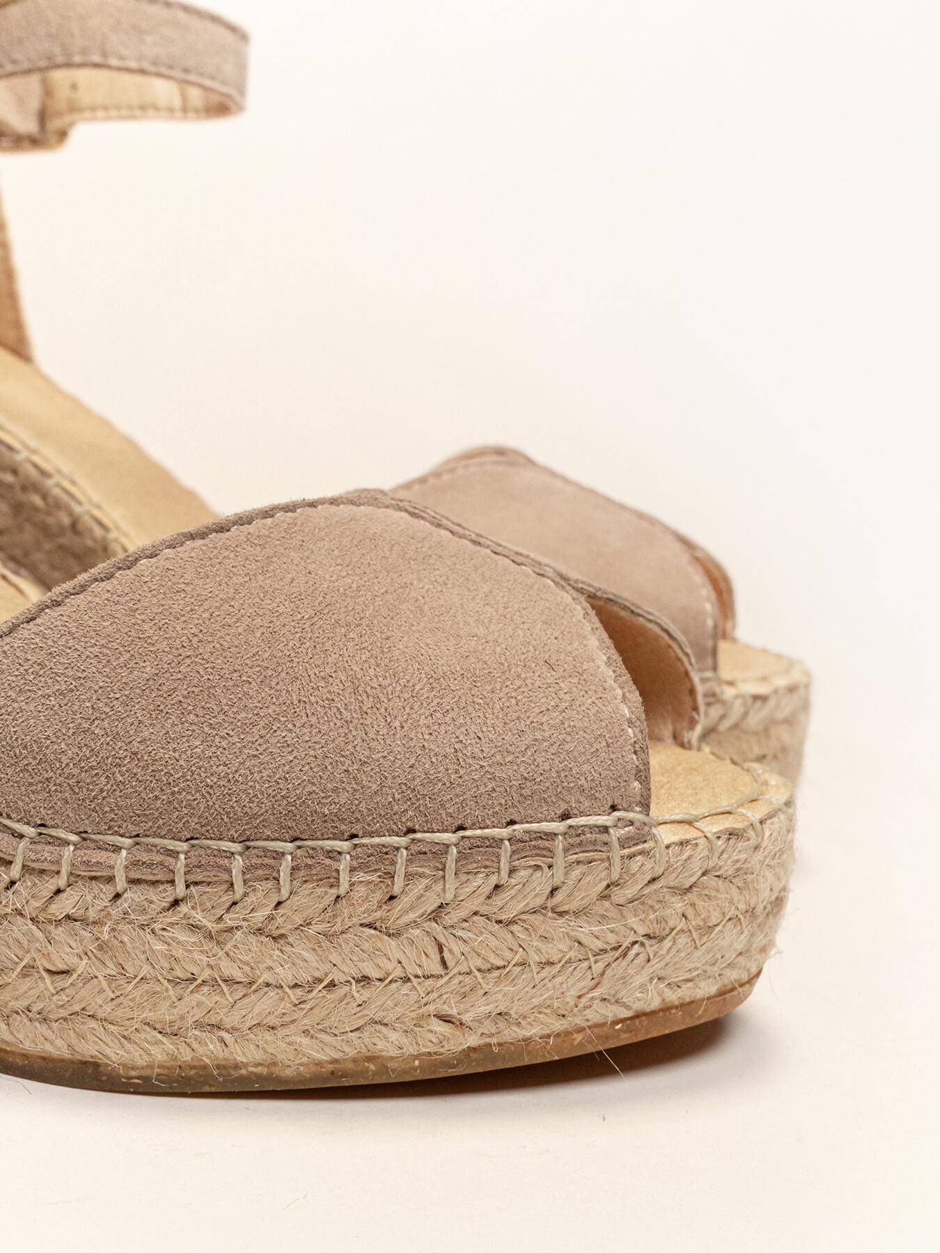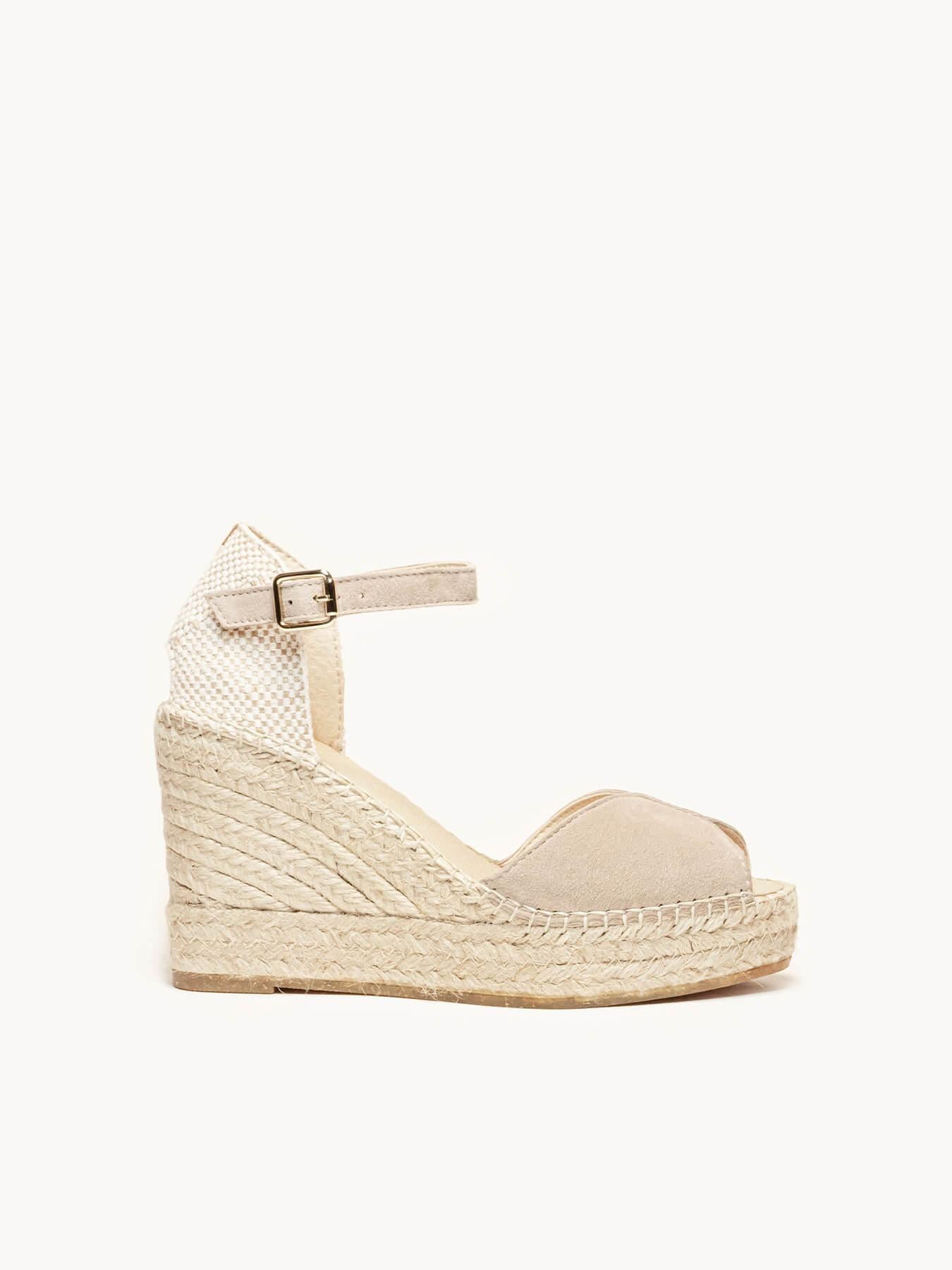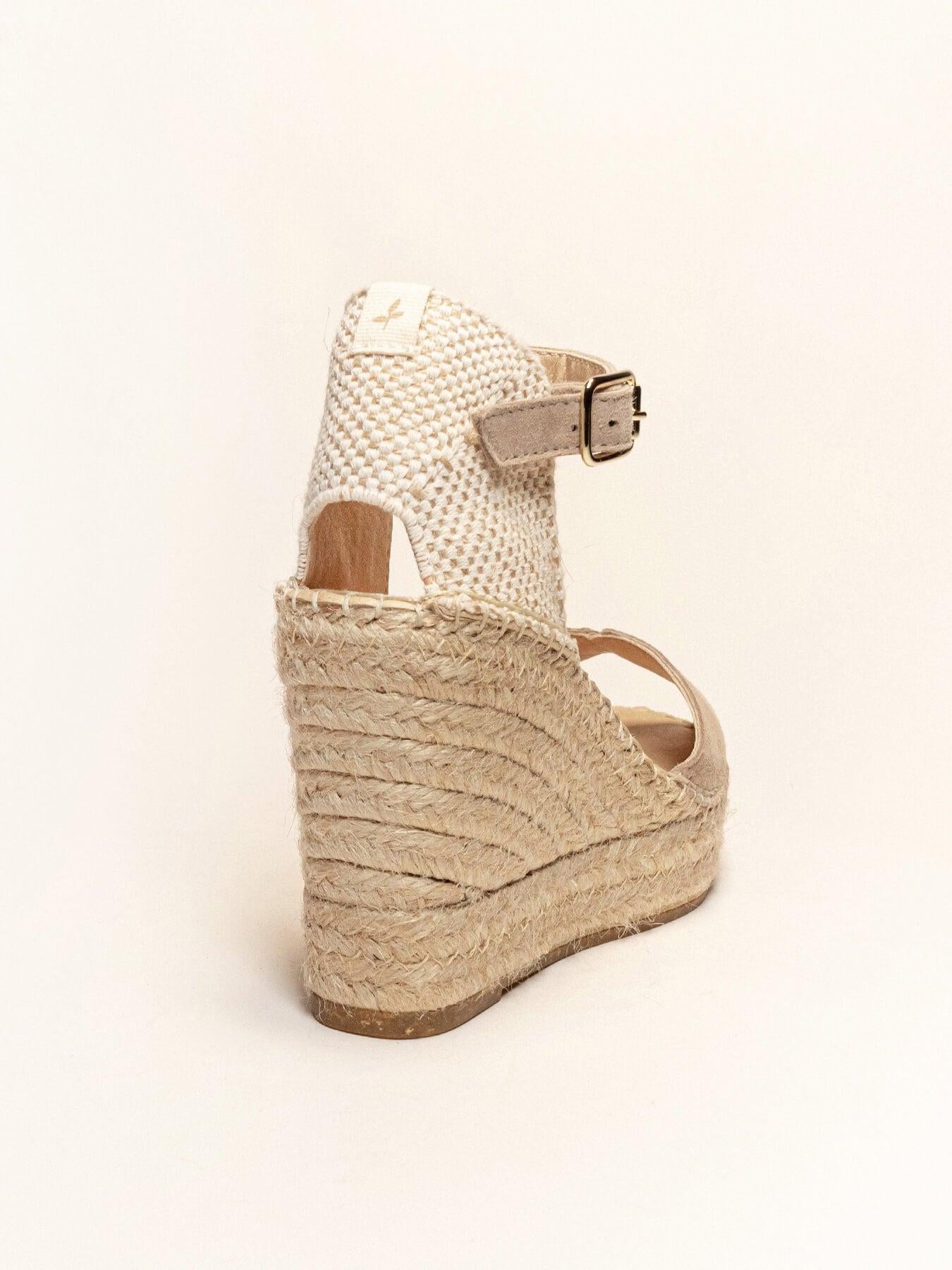 - Cuña de trenza de Yute natural con suela de goma reciclada, mezclada con fibras naturales.