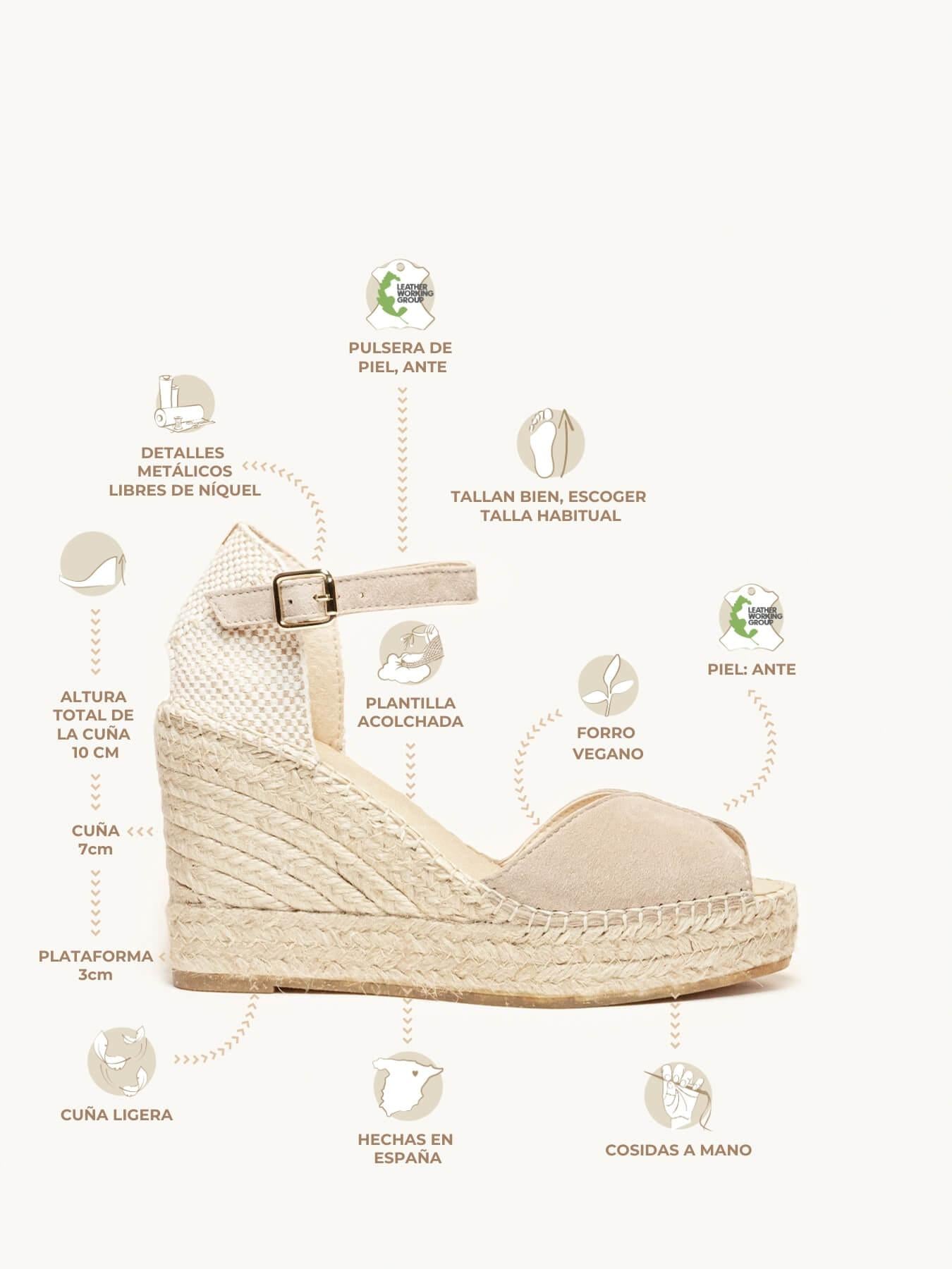 - El Ante de la alpargata Alelí está certificado por el Leather Working Group (una organización que promueve prácticas ambientales sostenibles)