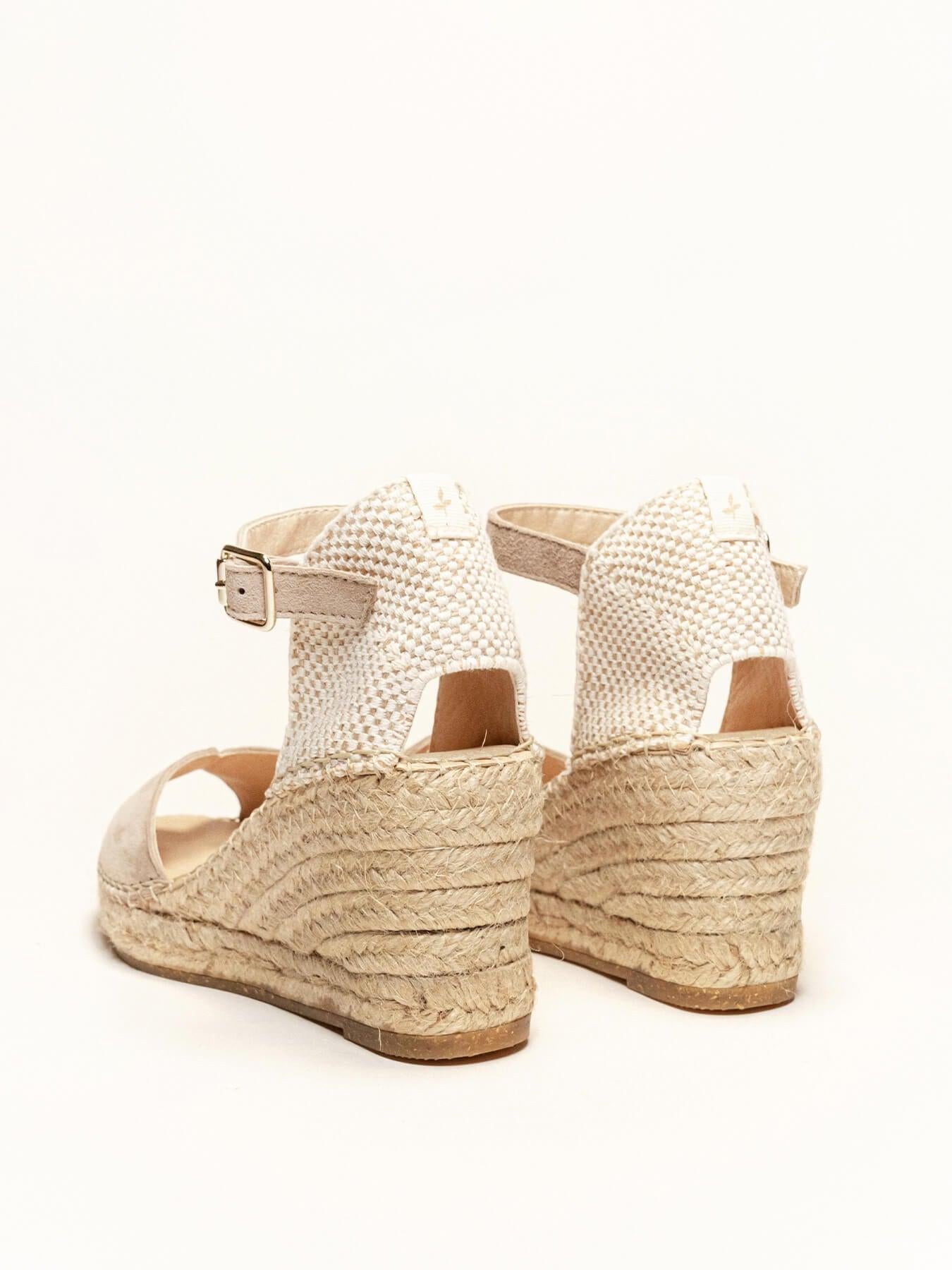 - Cuña de trenza de Yute natural con suela de goma reciclada, mezclada con fibras naturales.