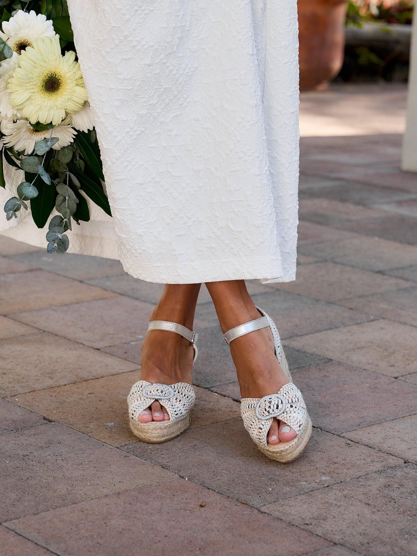 La alpargata de cuña media plataforma Amapola, es uno de nuestros modelos más románticos. Nuestra alpargata sandalia con pulsera es un modelo muy versátil, ideal para el día a día y también para darle un toque muy chic a los looks más especiales. Unas alpargatas muy especiales.