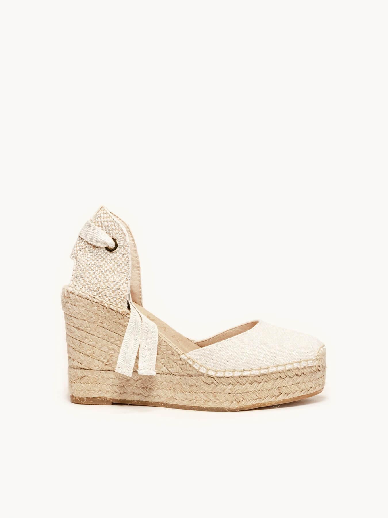 La alpargata de cuña alta Cala, es uno de nuestros modelos más especiales, perfecto para tu día. Las alpargatas de novia que podrás elegir como primera opción o como alpargatas de cambio. Conservarás la altura, sus cintas darán ese toque especial a tu vestido y llevarás las alpargatas cómodas que te permitirán disfrutar al máximo.