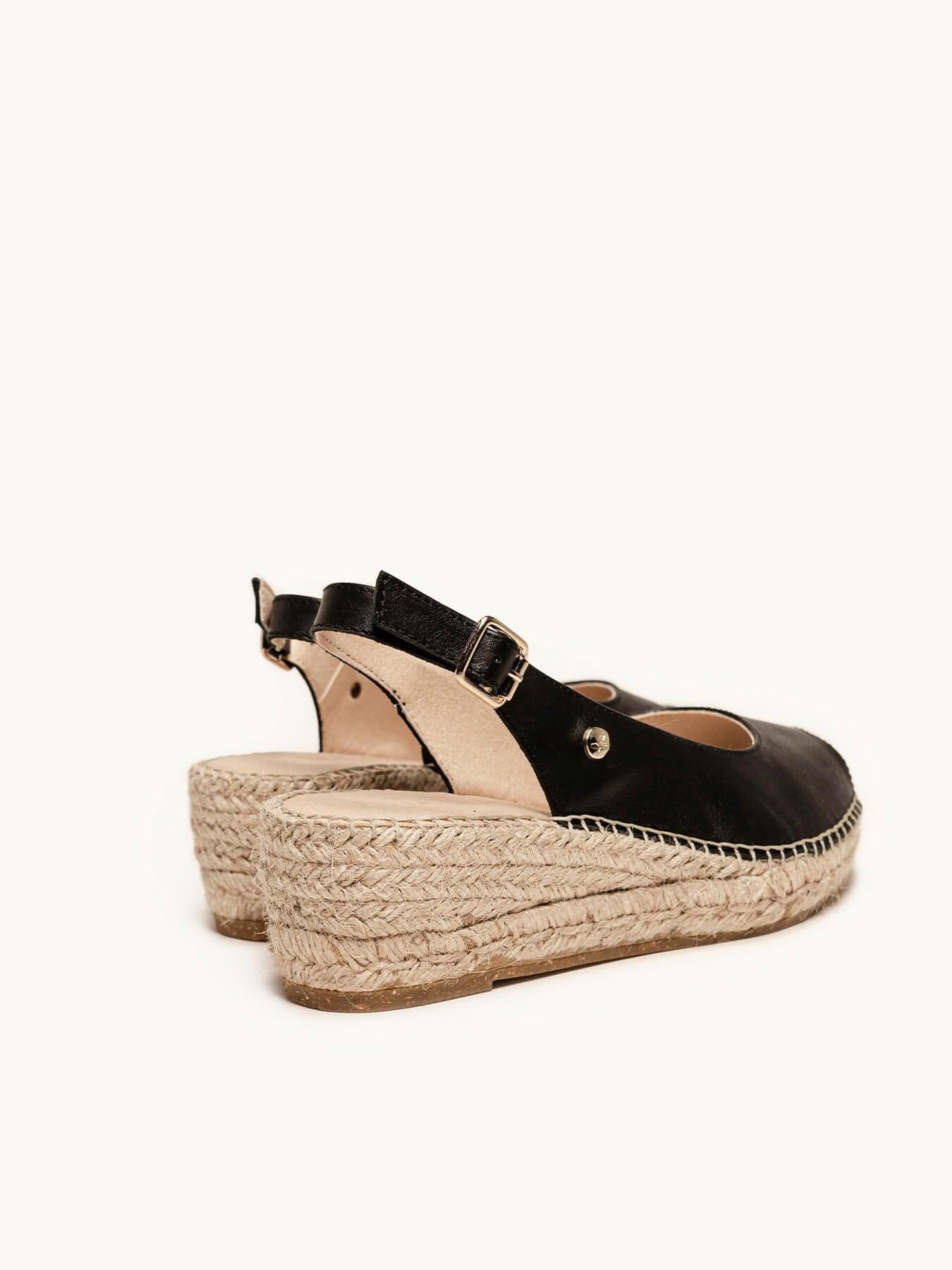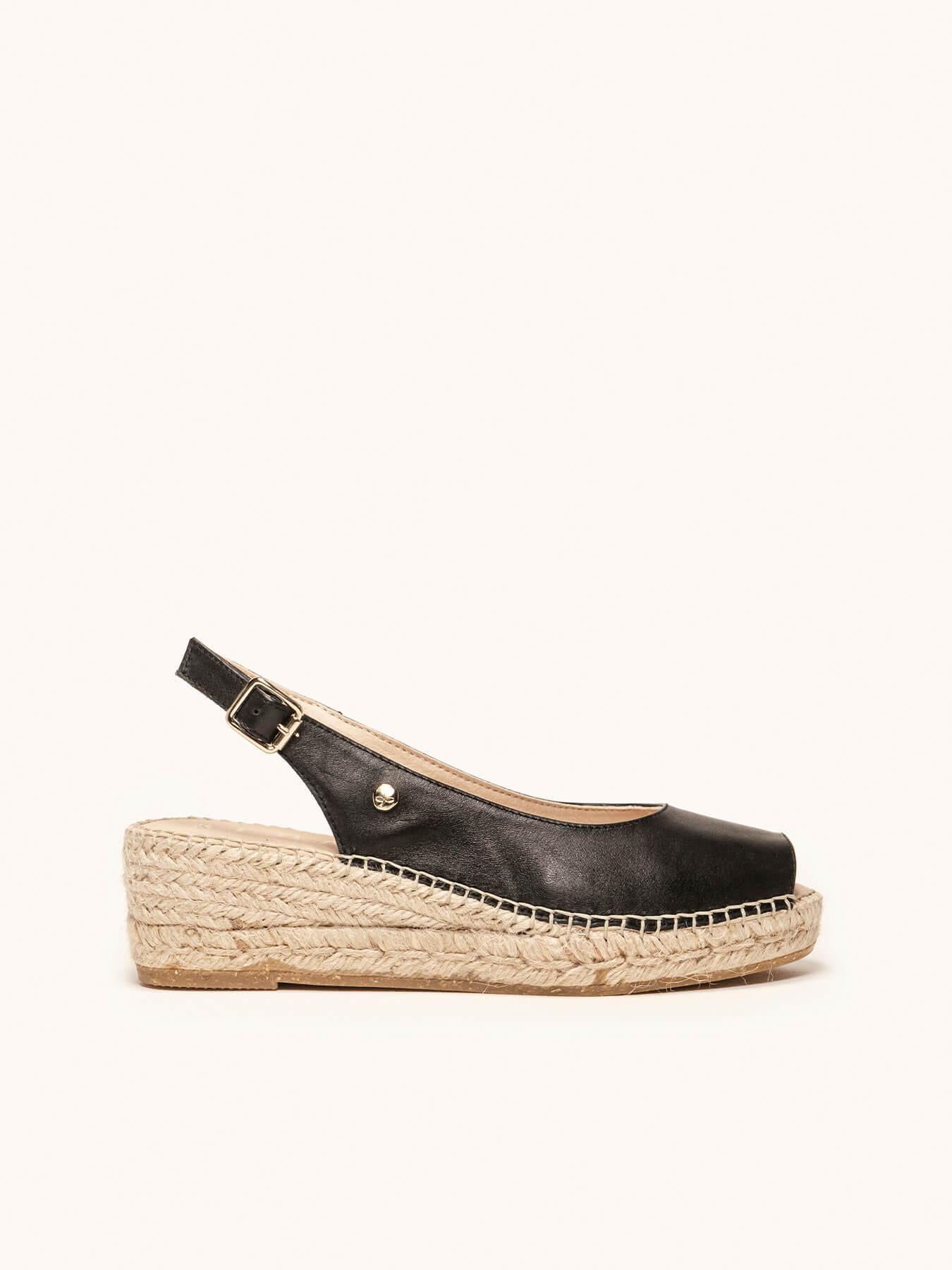 La alpargata de cuña baja Clavel, es uno de nuestros favoritos. Nuestro salón con escote redondo es un modelo muy versátil, ideal para el día a día y también para darle un toque muy chic a los looks más especiales. Las alpargatas con cuña estilo salón se sujetan muy bien al tobillo, irás súper cómoda durante todo el día.