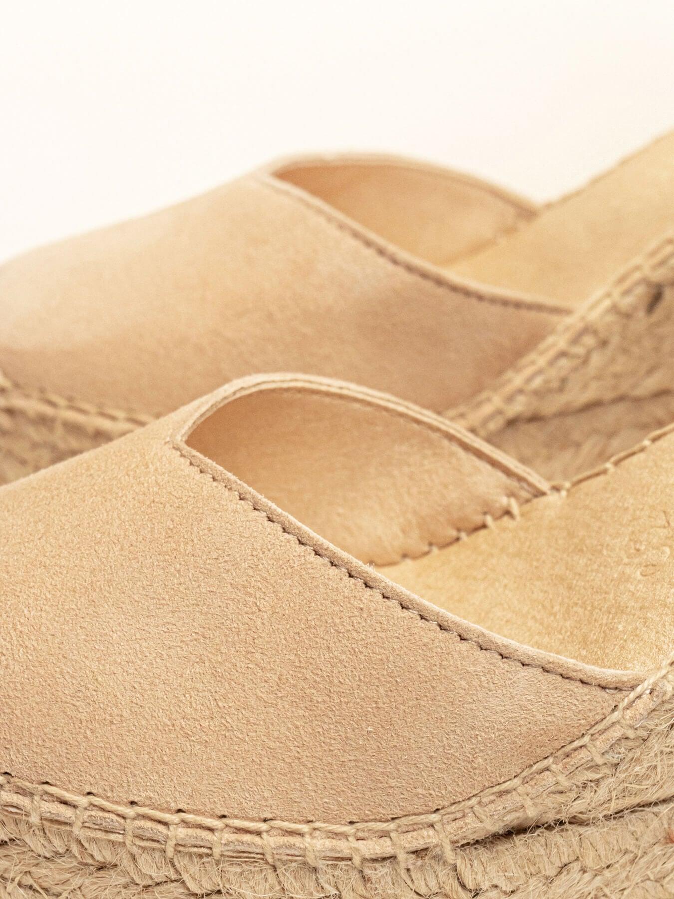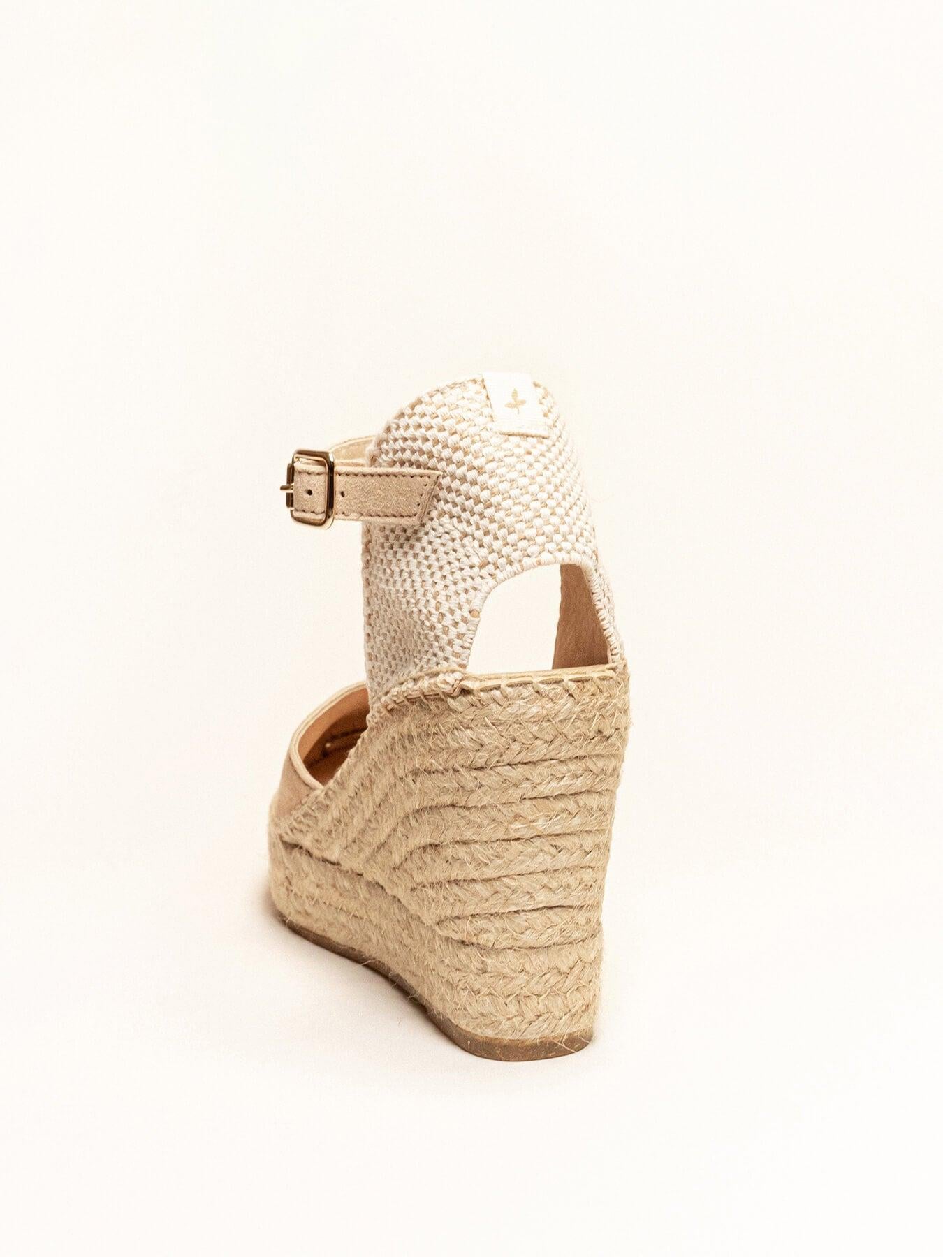 - Cuña de trenza de Yute natural con suela de goma reciclada, mezclada con fibras naturales.