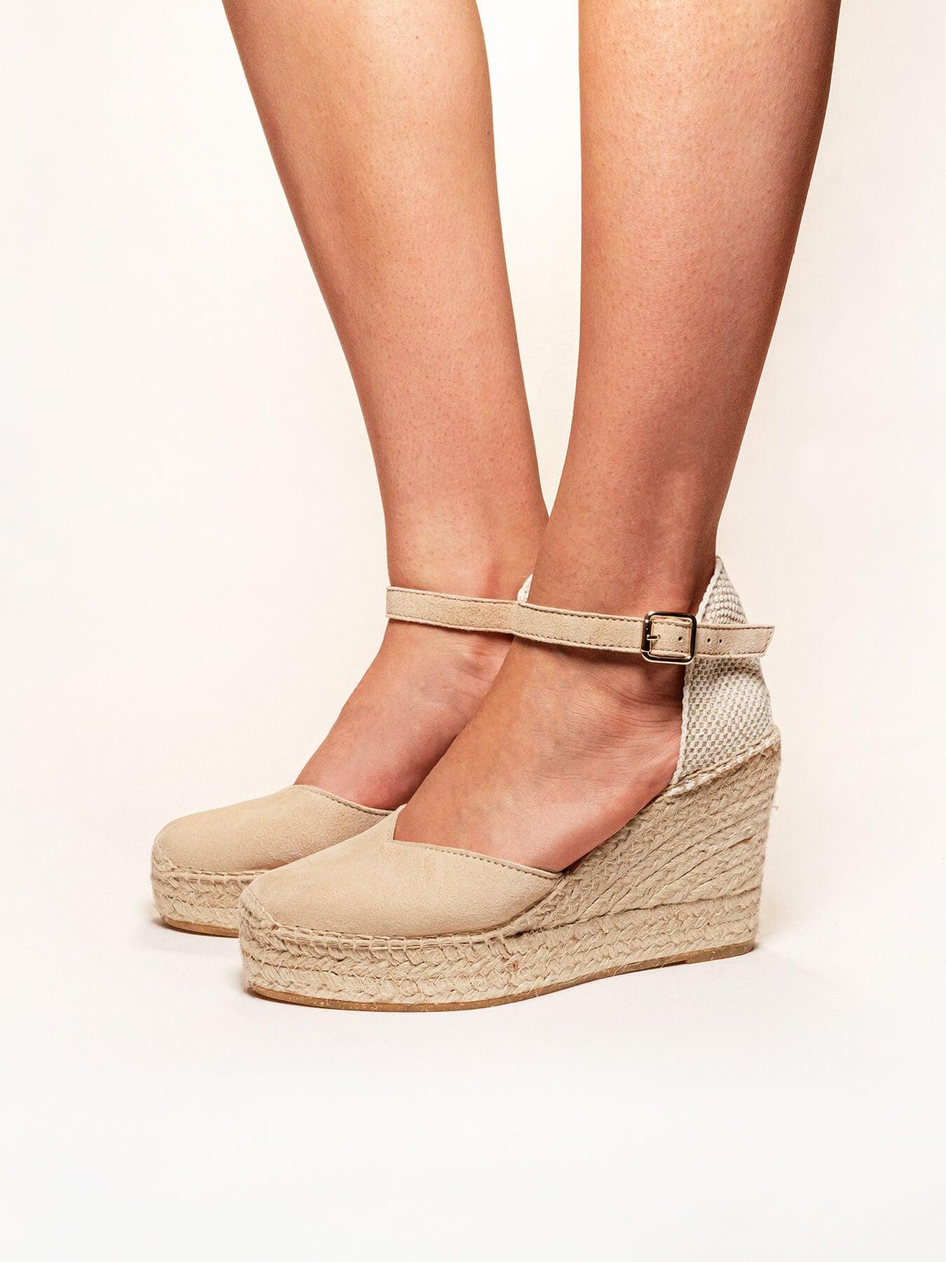 La alpargata de cuña alta con pulsera Jara, es uno de nuestros favoritos. Una alpargata con pulsera y escote corazón muy versátil, ideal para el día a día y también para darle un toque muy chic a los looks más especiales. Las alpargatas con cuña y pulsera se sujetan muy bien al tobillo, irás súper cómoda durante todo el día.