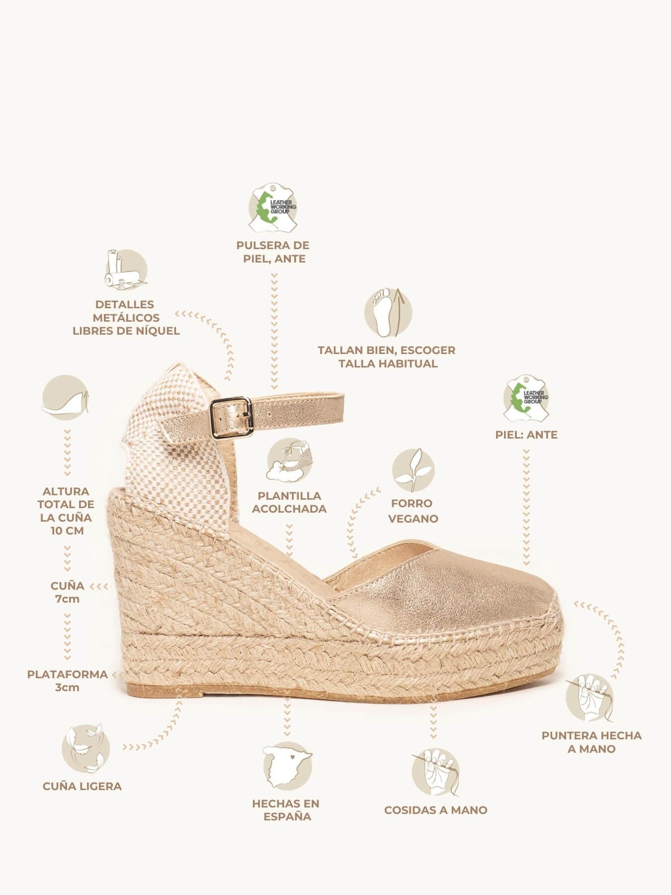 - El Ante Metal de la alpargata Jara está certificado por el Leather Working Group (una organización que promueve prácticas ambientales sostenibles)