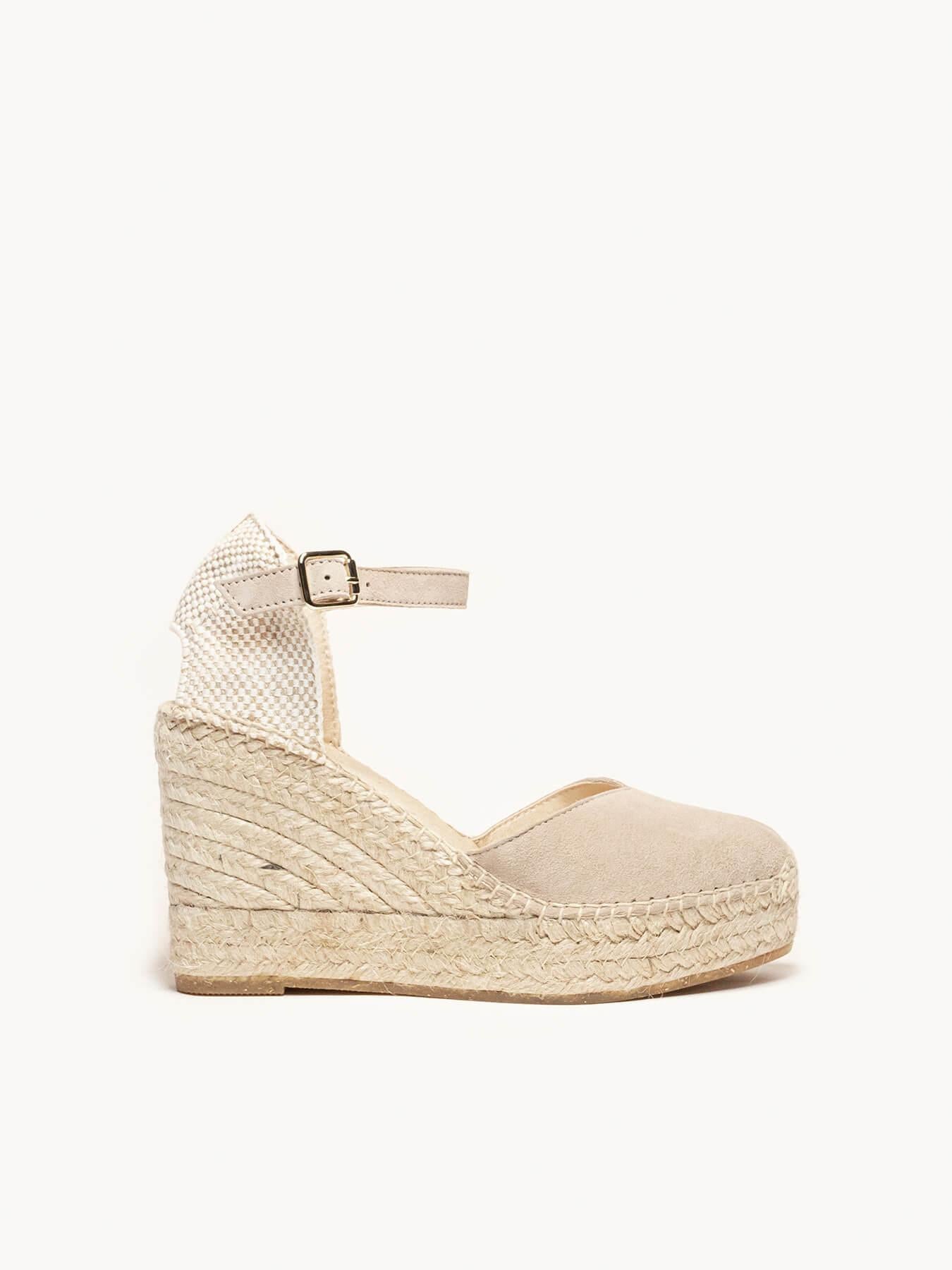 - Cuña de trenza de Yute natural con suela de goma reciclada, mezclada con fibras naturales.
