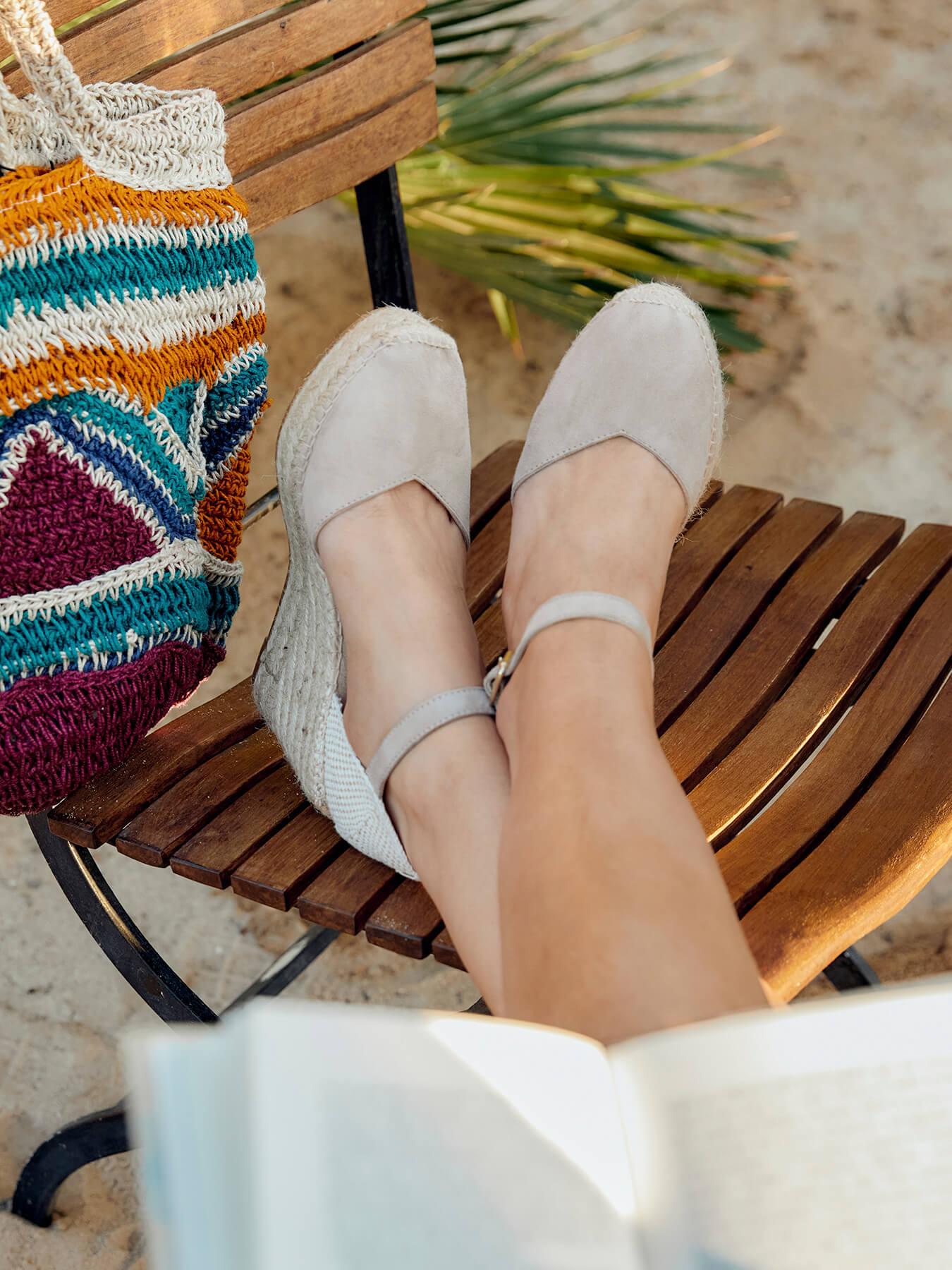 La alpargata de cuña alta con pulsera Jara, es uno de nuestros favoritos. Una alpargata con pulsera y escote corazón muy versátil, ideal para el día a día y también para darle un toque muy chic a los looks más especiales. Las alpargatas con cuña y pulsera se sujetan muy bien al tobillo, irás súper cómoda durante todo el día.