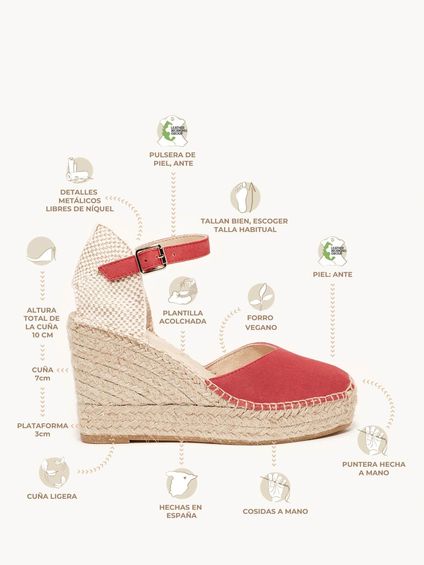 Alpargata Cuña Alta: 10 cm totales (3 de plataforma + 7 de cuña).