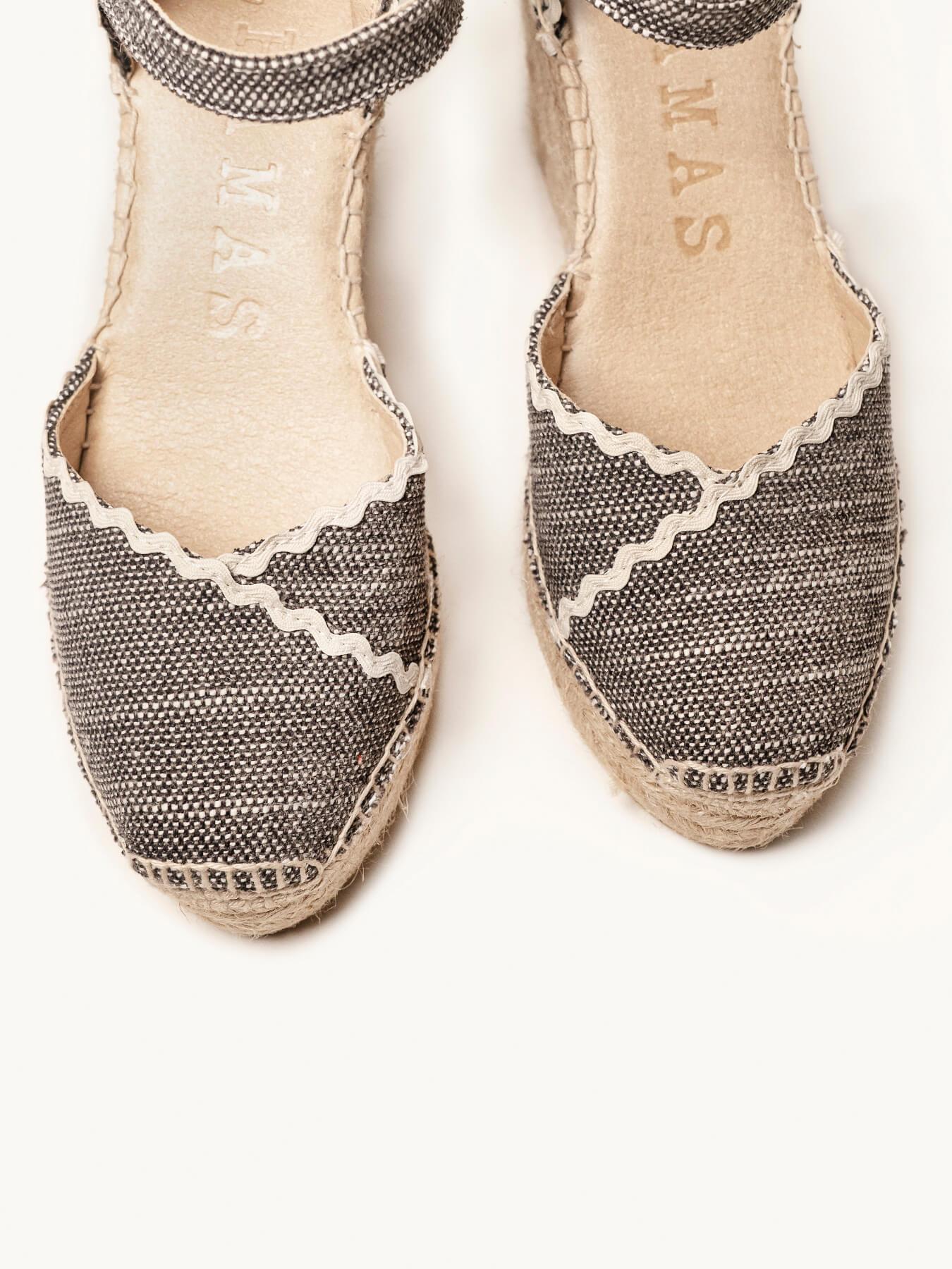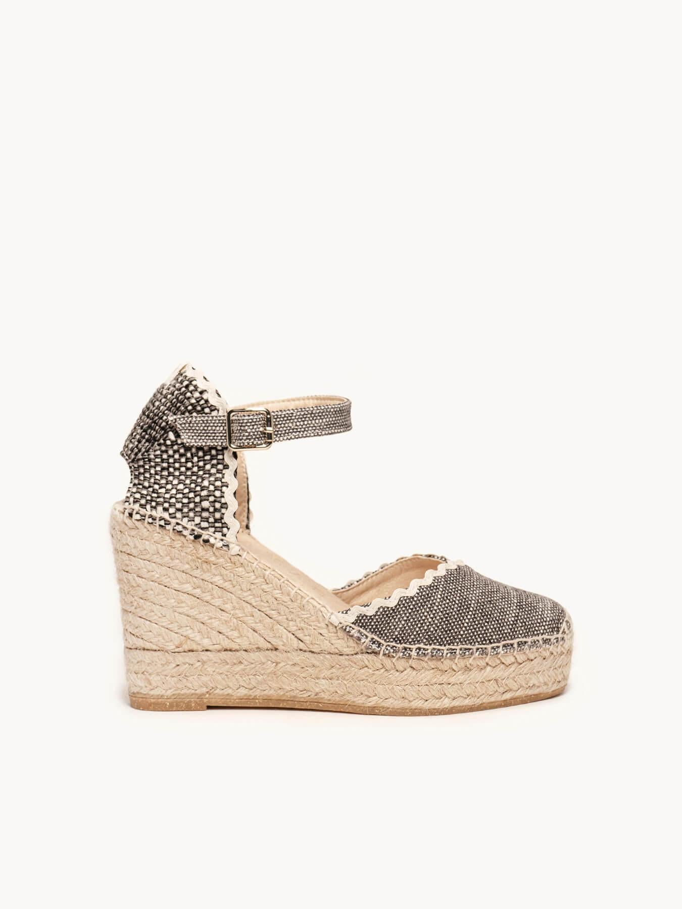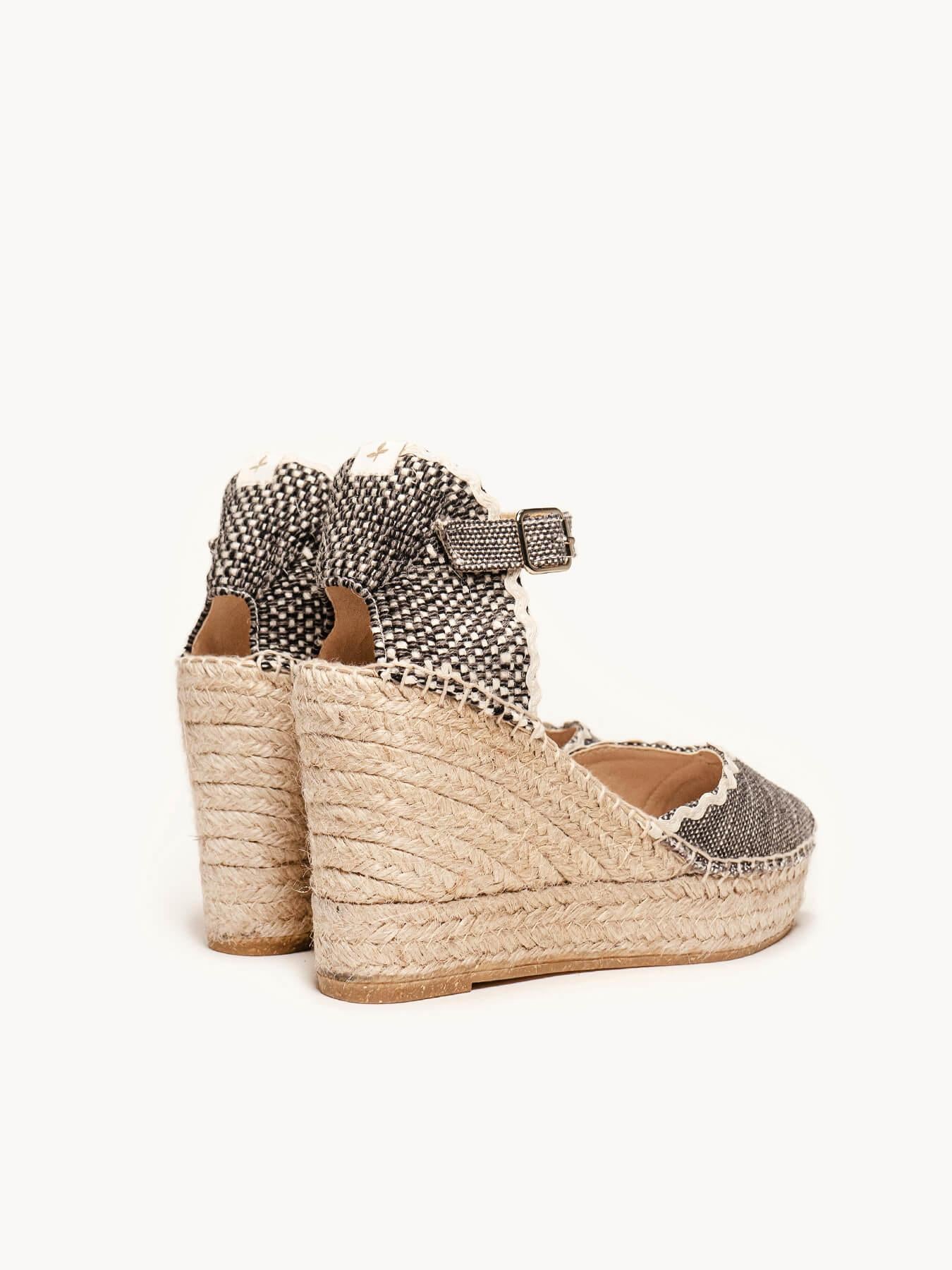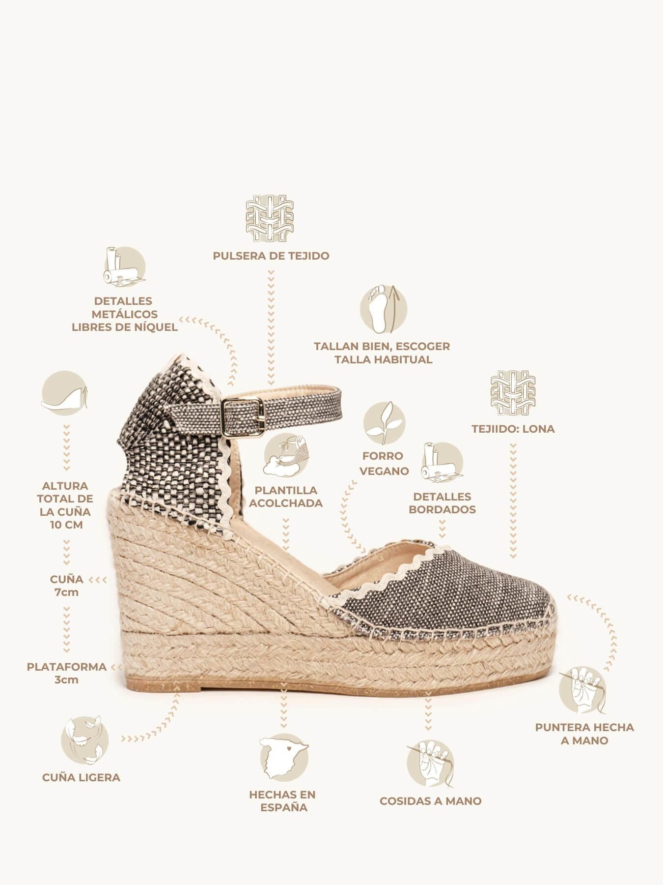 - Cuña de trenza de Yute natural con suela de goma reciclada, mezclada con fibras naturales.