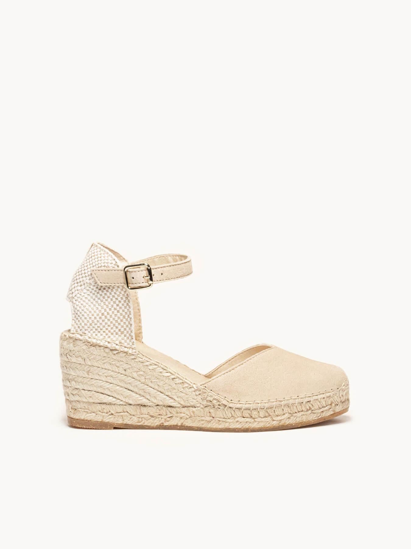 La alpargata de cuña media con pulsera Jara, es uno de nuestros favoritos. Una alpargata con pulsera y escote corazón muy versátil, ideal para el día a día y también para darle un toque muy chic a los looks más especiales. Las alpargatas con cuña y pulsera se sujetan muy bien al tobillo, irás súper cómoda durante todo el día.