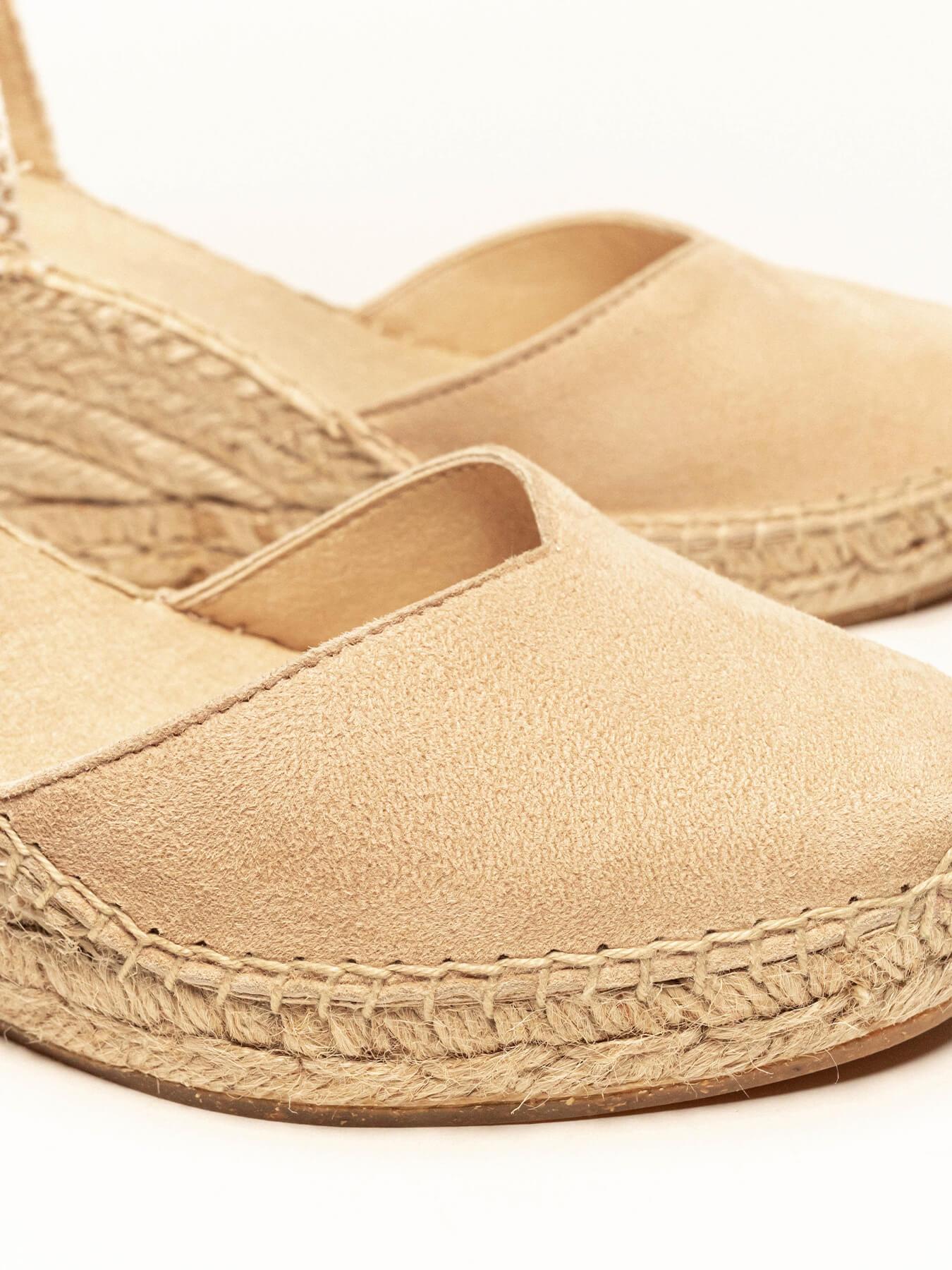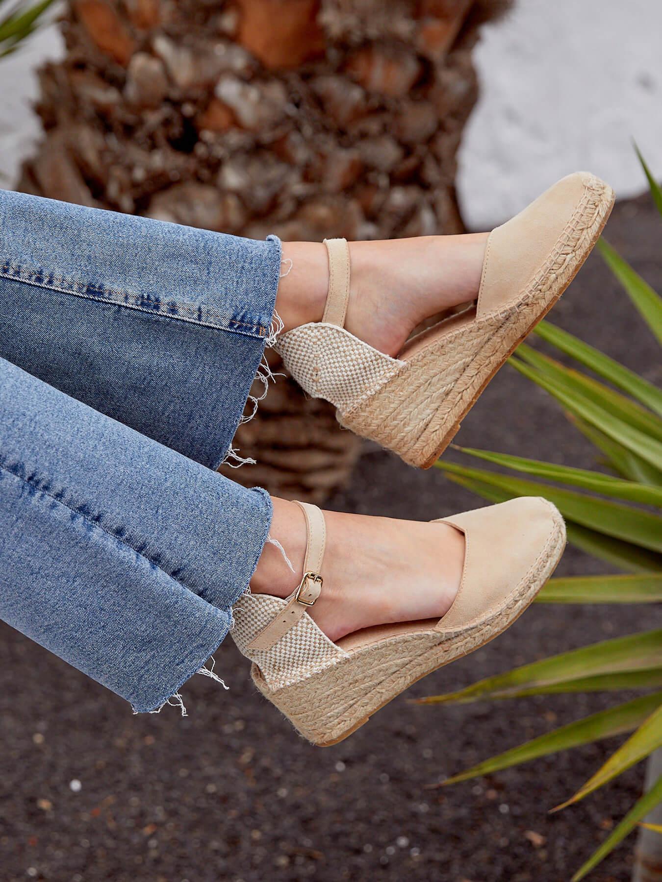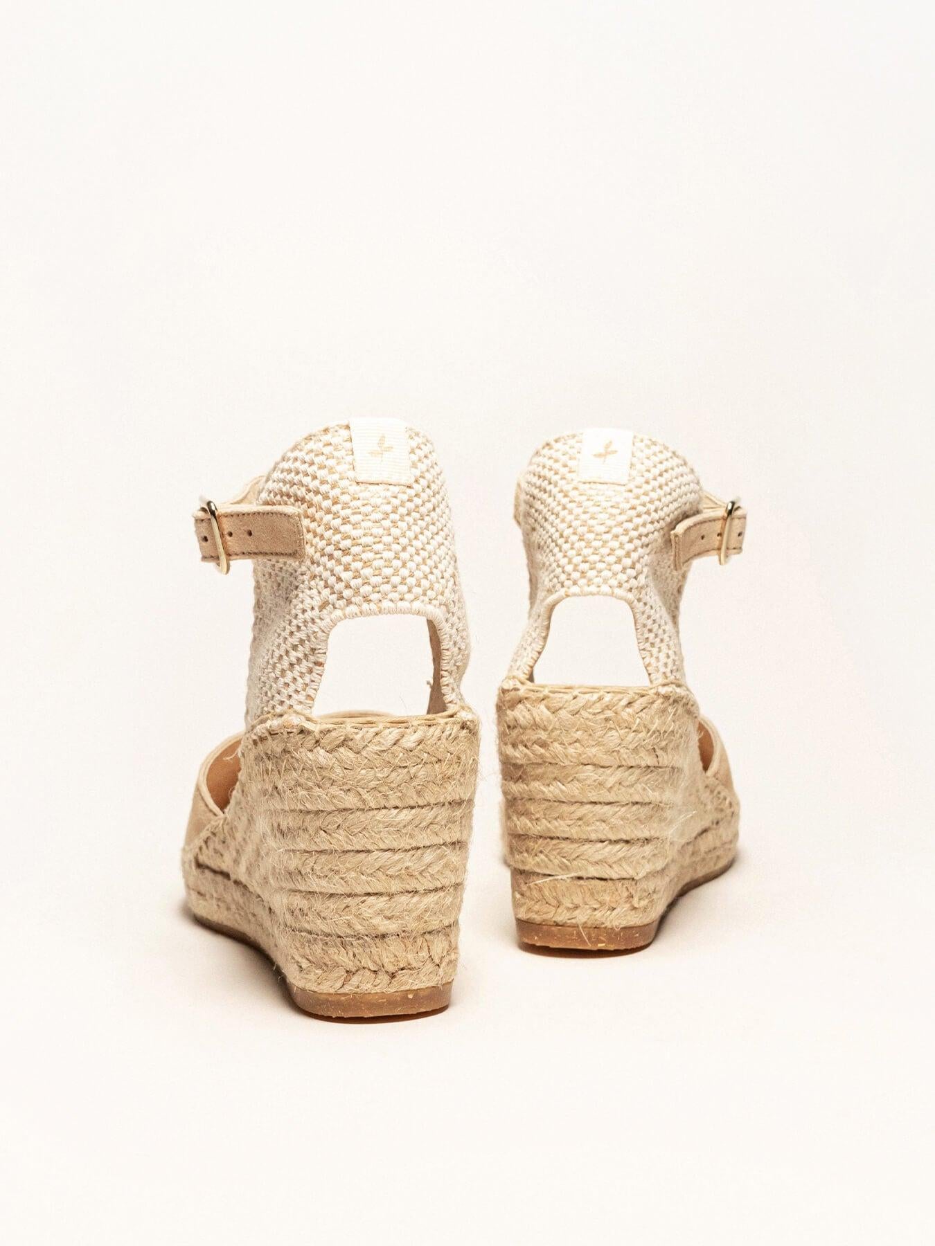 - Cuña de trenza de Yute natural con suela de goma reciclada, mezclada con fibras naturales.