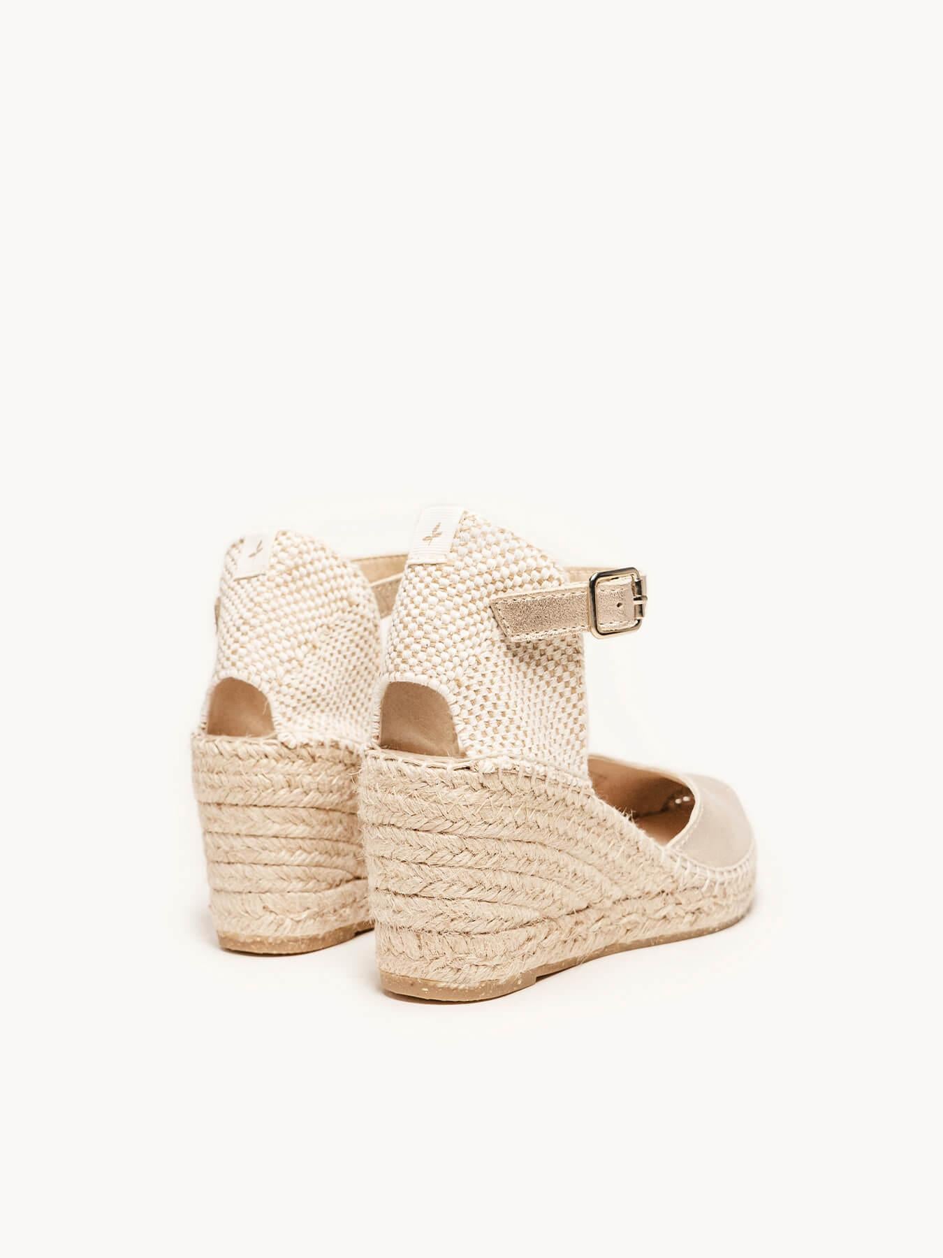 - Cuña de trenza de Yute natural con suela de goma reciclada, mezclada con fibras naturales.