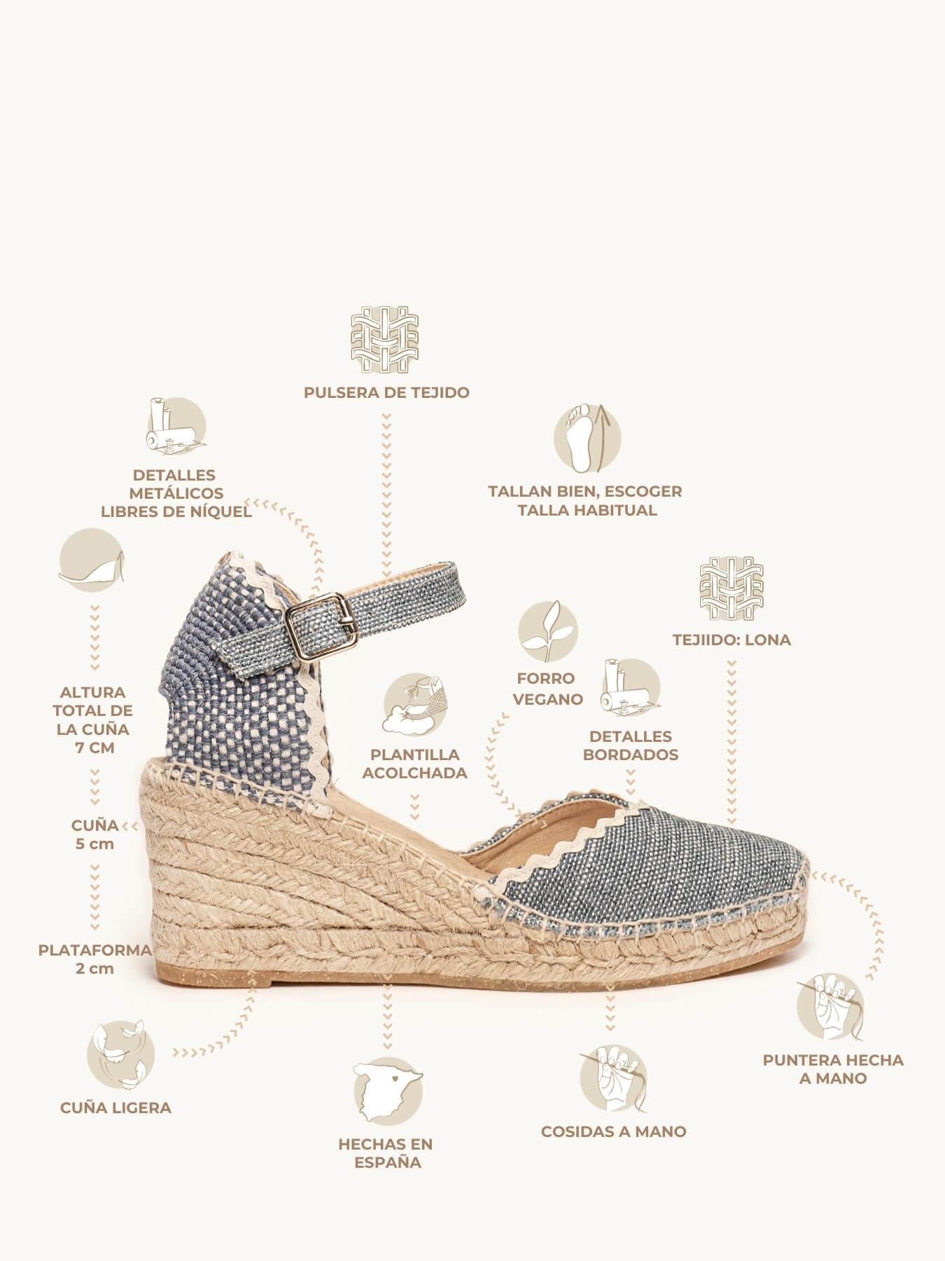 - El tejido de la alpargata Jara es de algodón y poliéster.