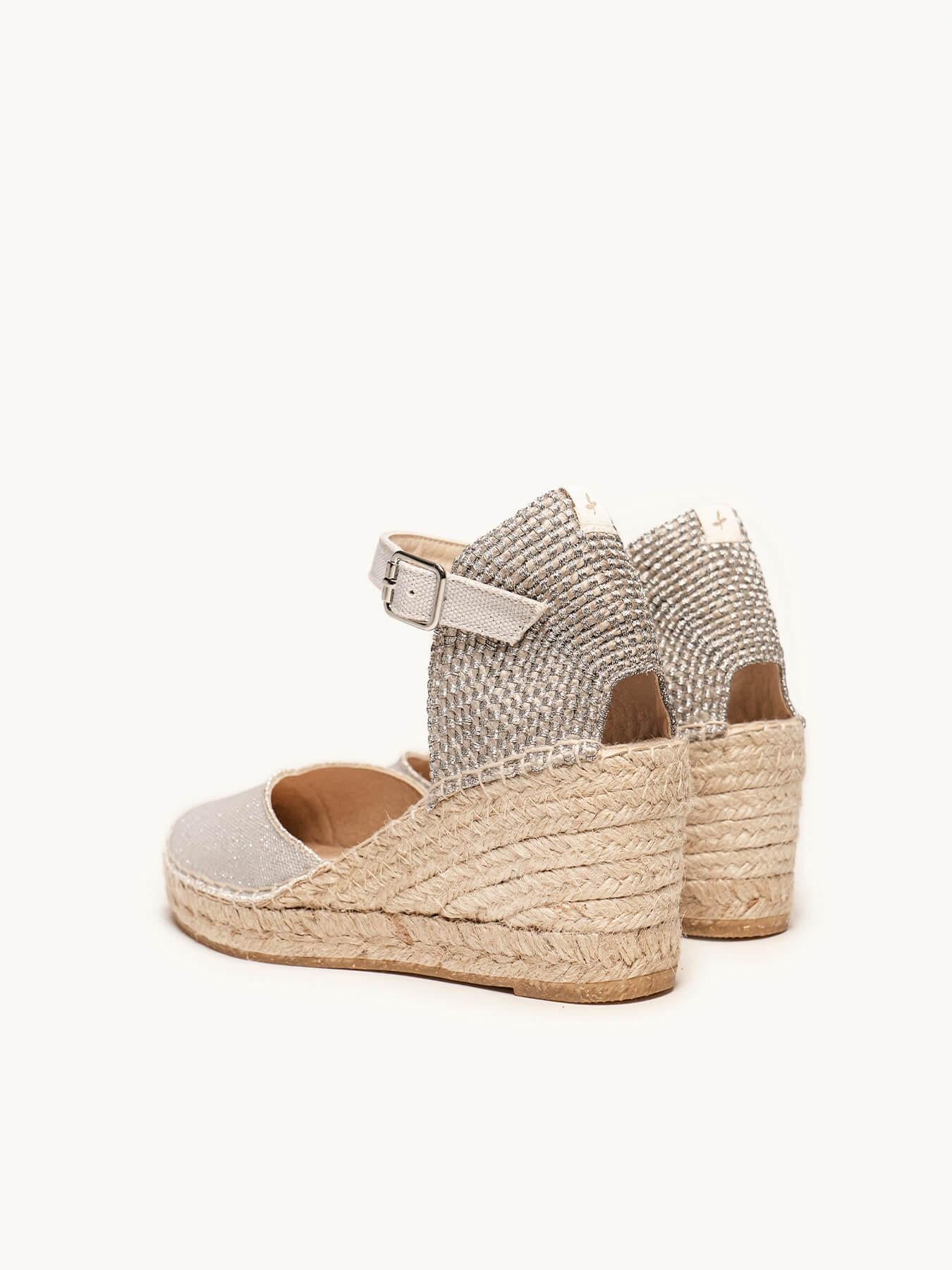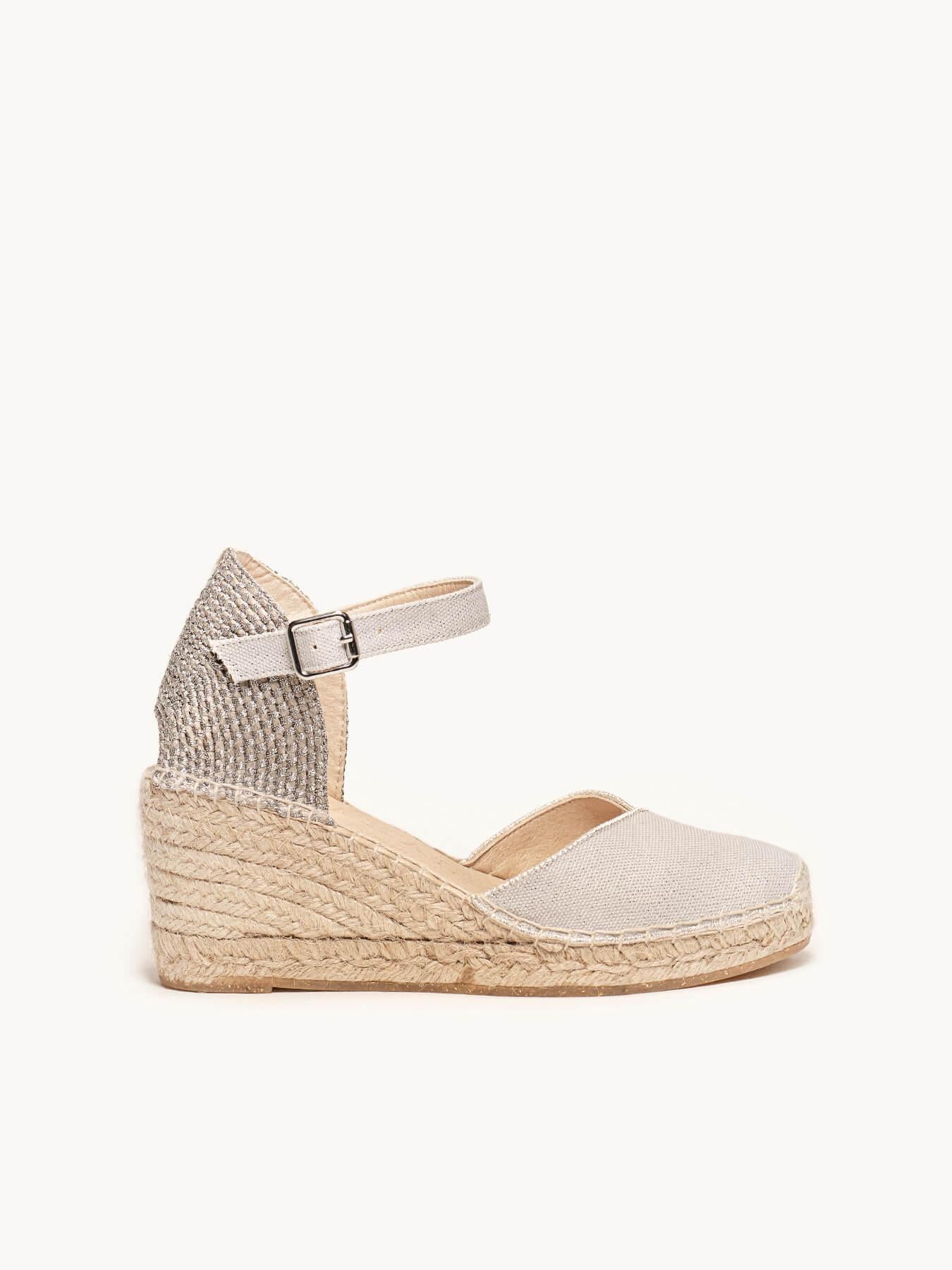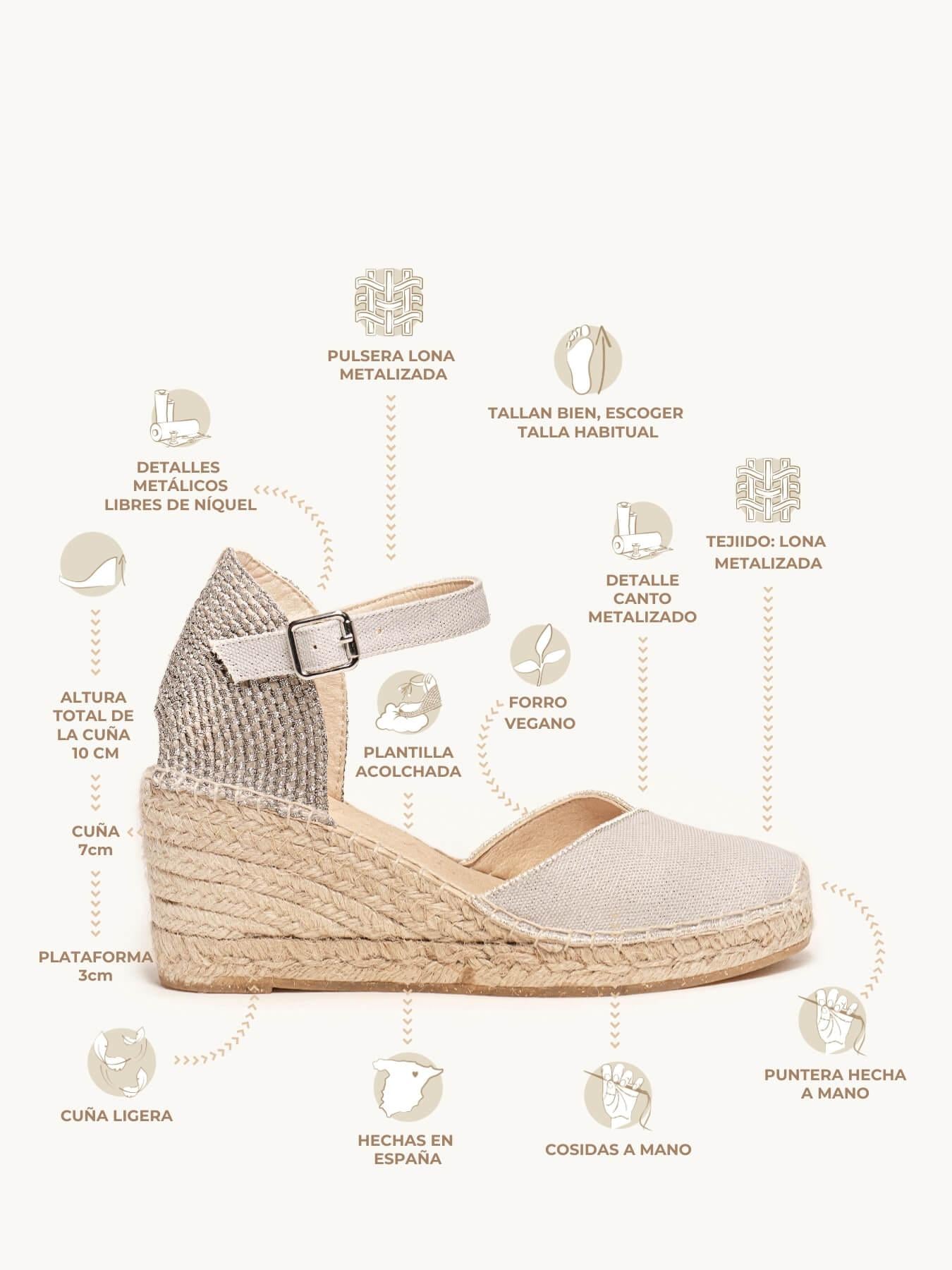 - Cuña de trenza de Yute natural con suela de goma reciclada, mezclada con fibras naturales.