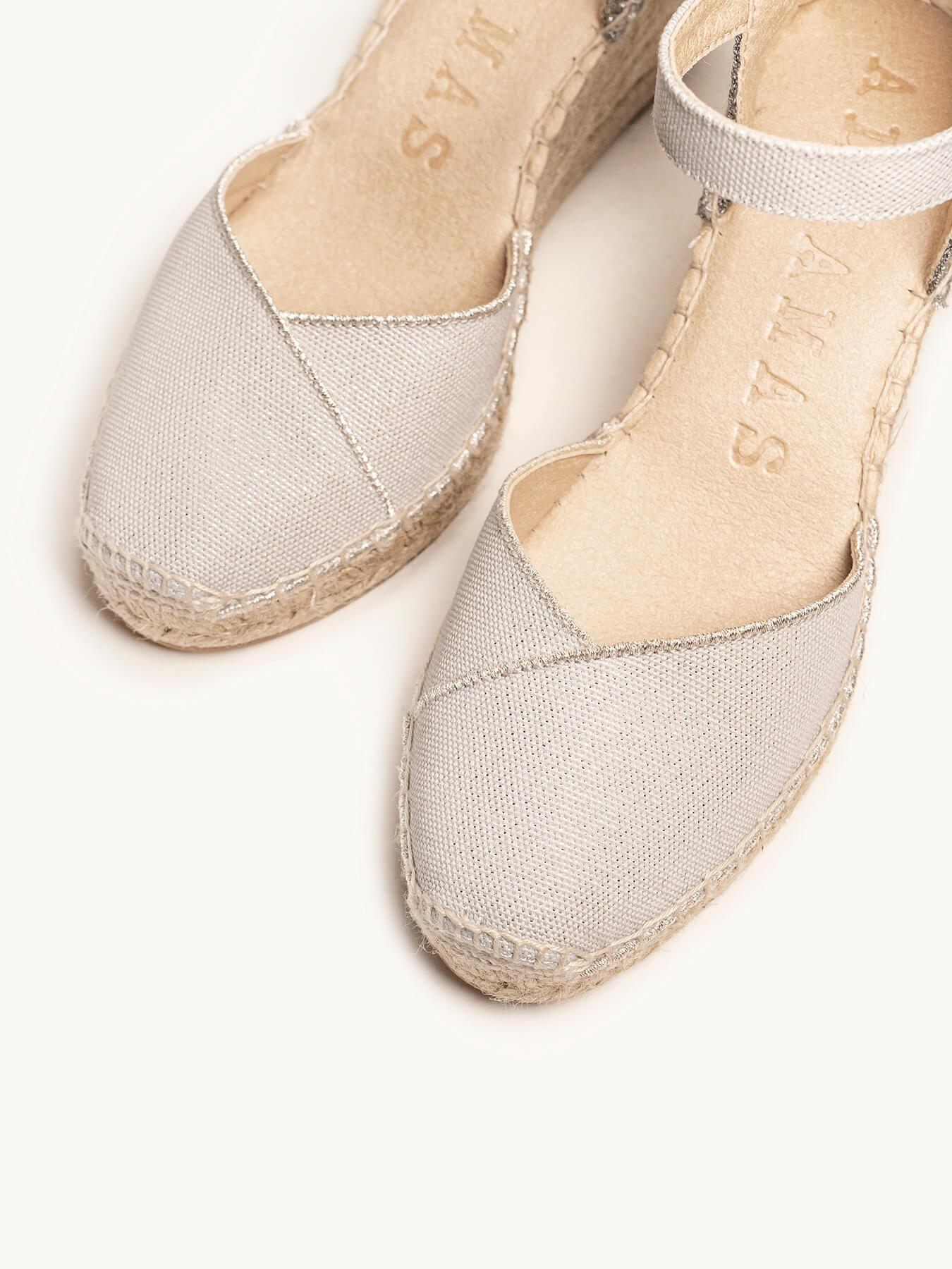La alpargata de cuña media con pulsera Jara, es uno de nuestros favoritos. Una alpargata con pulsera y escote corazón muy versátil, ideal para el día a día y también para darle un toque muy chic a los looks más especiales. Las alpargatas con cuña y pulsera se sujetan muy bien al tobillo, irás súper cómoda durante todo el día.