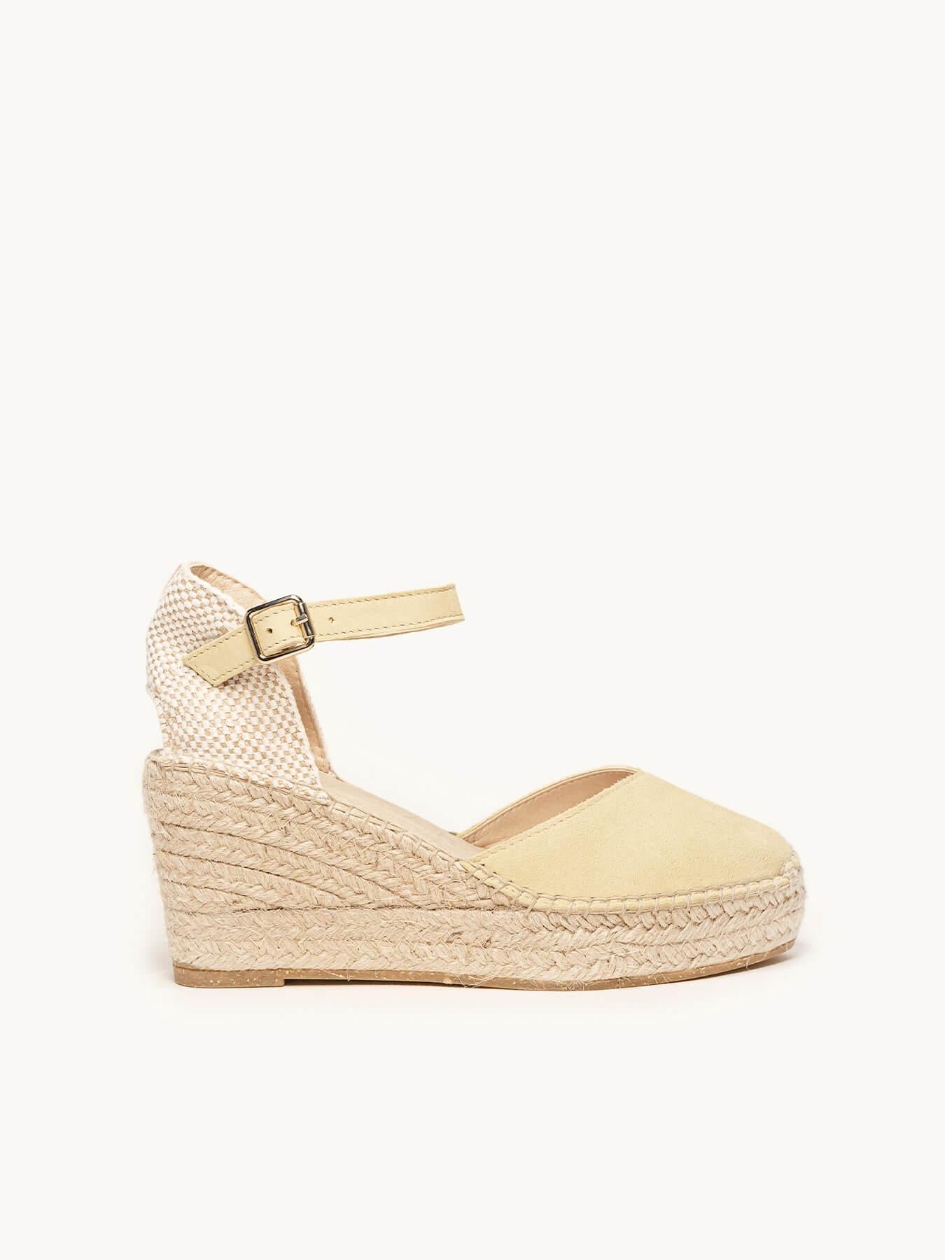 La alpargata de cuña media plataforma con pulsera Jara, es uno de nuestros favoritos. Una alpargata con pulsera y escote corazón muy versátil, ideal para el día a día y también para darle un toque muy chic a los looks más especiales. Las alpargatas con cuña y pulsera se sujetan muy bien al tobillo, irás súper cómoda durante todo el día.