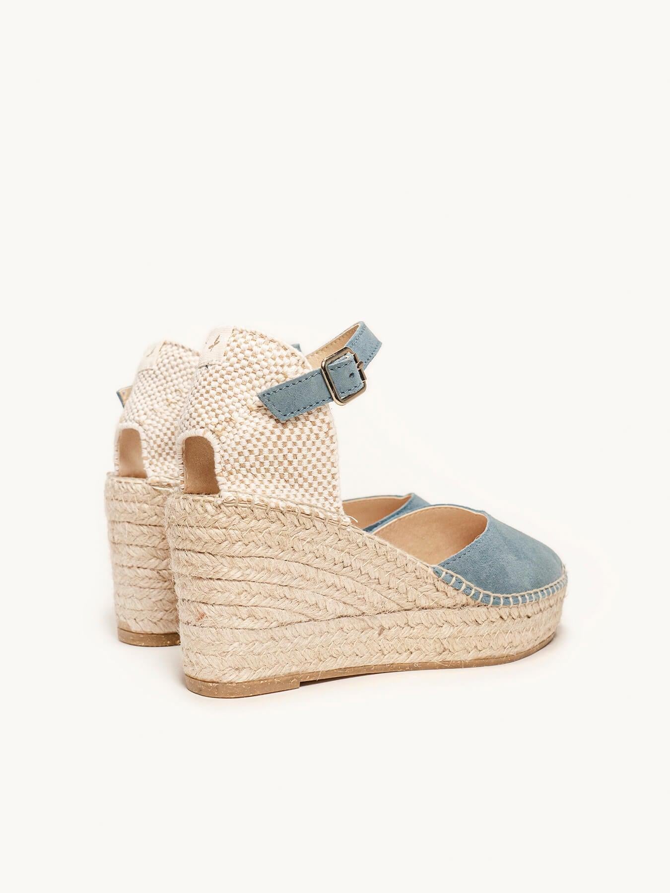 - Cuña de trenza de Yute natural con suela de goma reciclada, mezclada con fibras naturales.