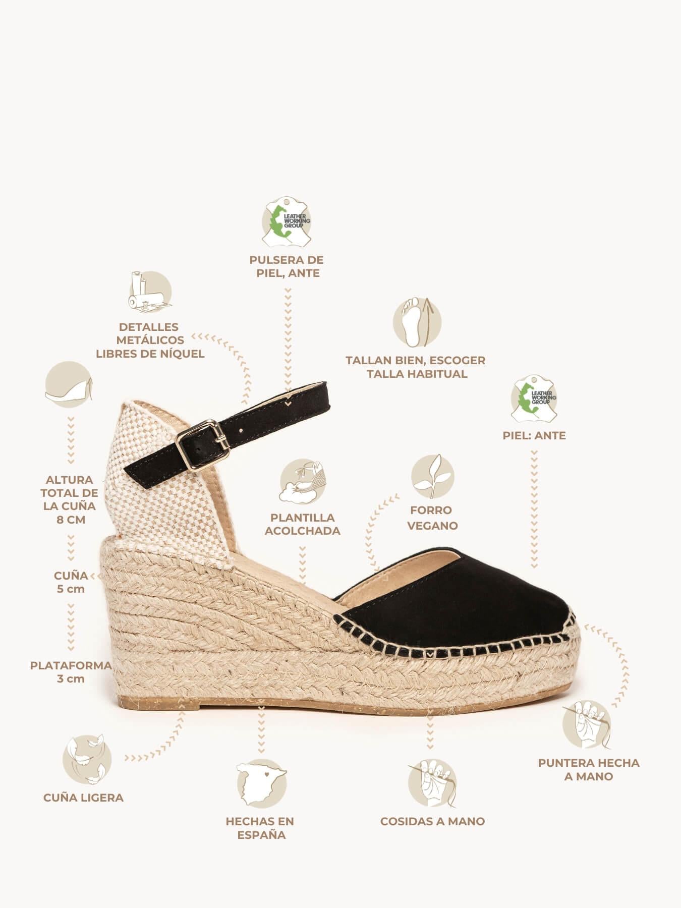- El Ante de la alpargata Jara está certificado por el Leather Working Group (una organización que promueve prácticas ambientales sostenibles)