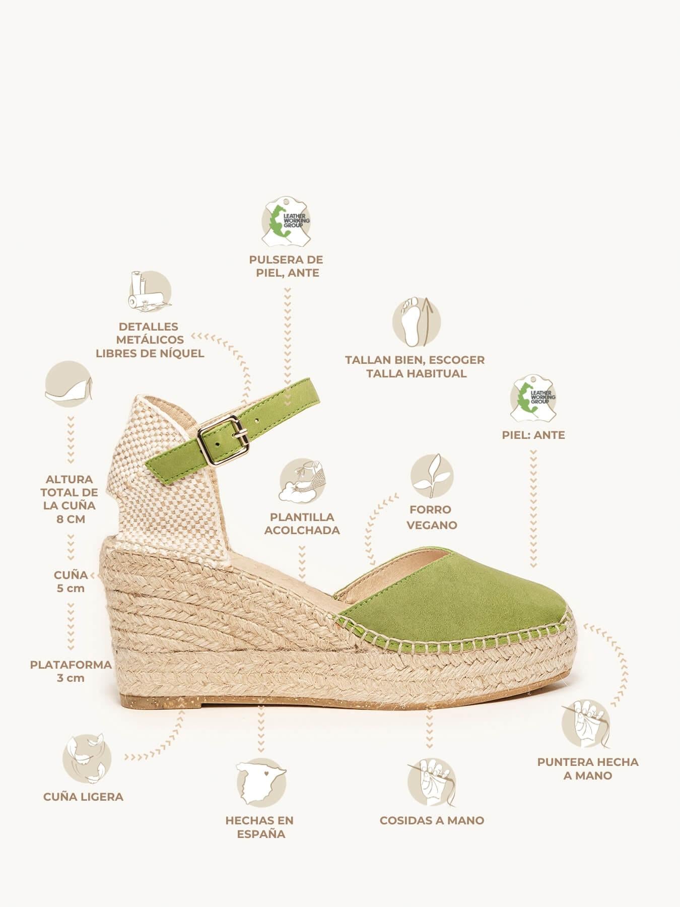 - El Ante de la alpargata Jara está certificado por el Leather Working Group (una organización que promueve prácticas ambientales sostenibles)
