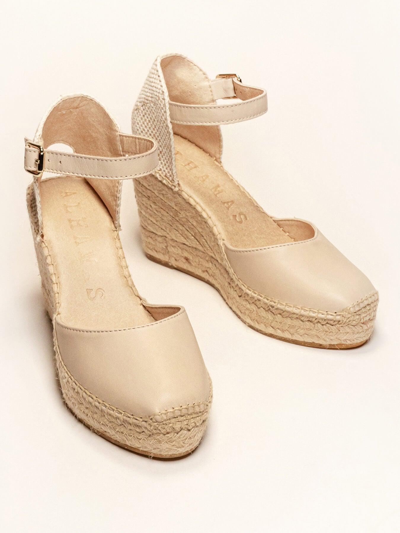 La alpargata de cuña alta Marga, es una de nuestras favoritas. Una alpargata con pulsera y escote redondo es un modelo muy versátil, ideal para el día a día y también para darle un toque muy chic a los looks más especiales. Las alpargatas con cuña y pulsera se sujetan muy bien al tobillo, irás súper cómoda durante todo el día.