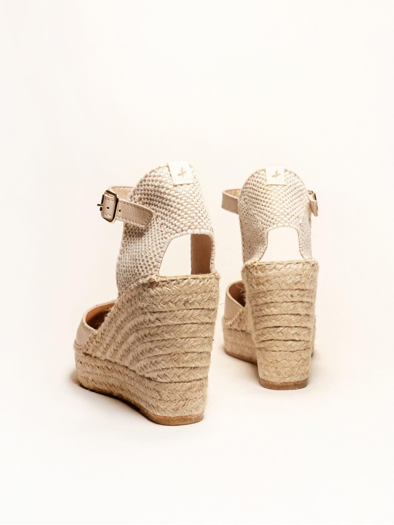 - Cuña de trenza de Yute natural con suela de goma reciclada mezclada con fibras naturales.
