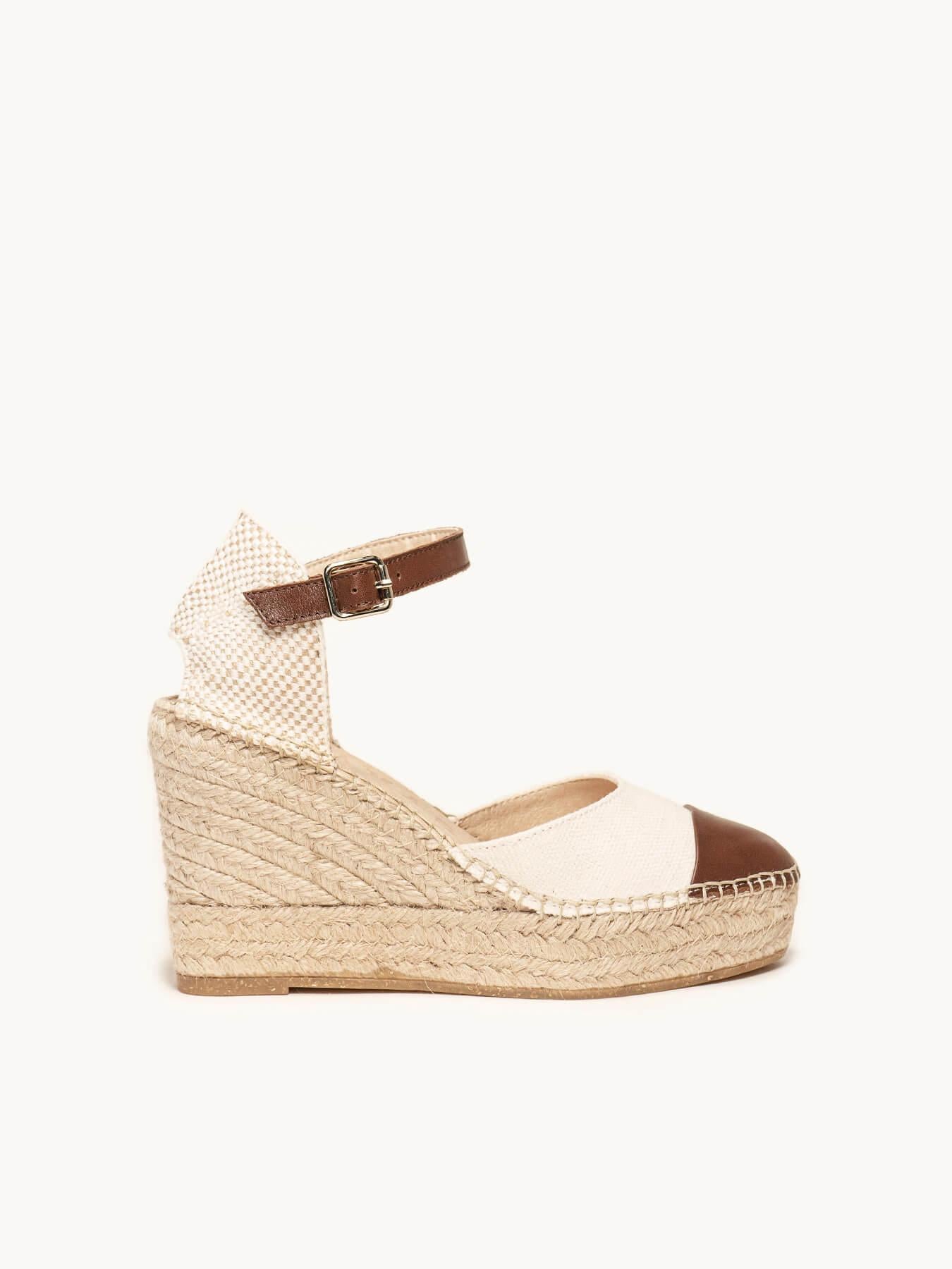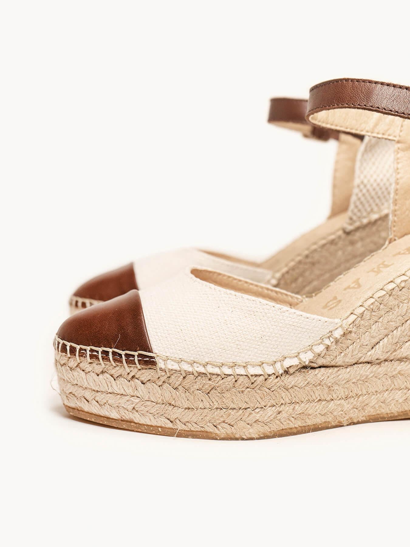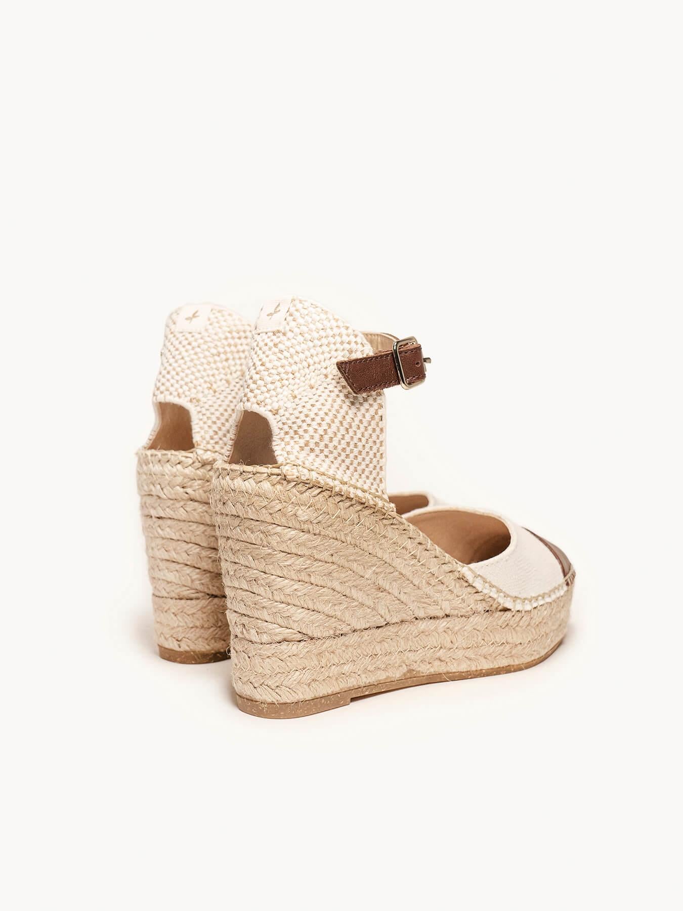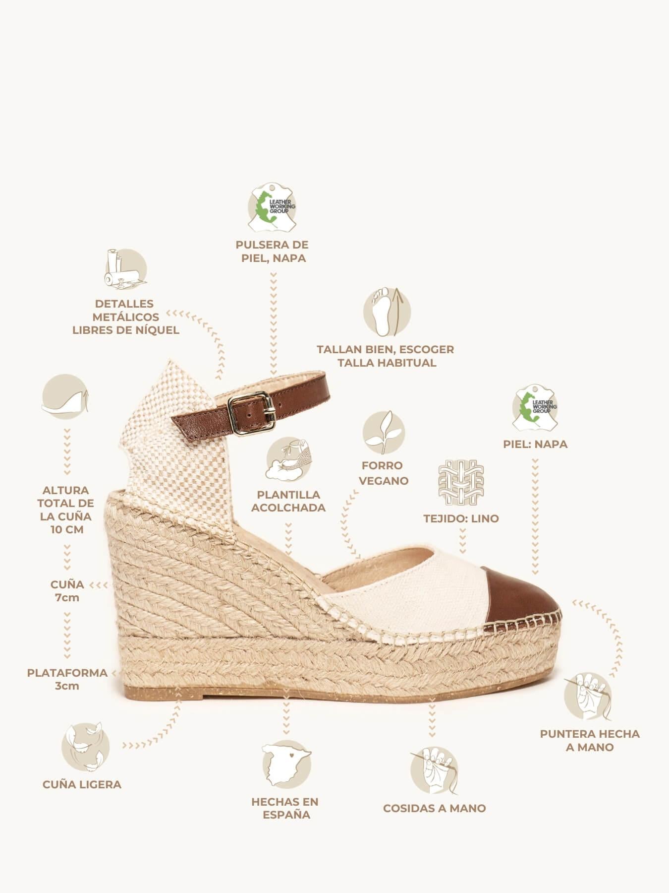 - Cuña de trenza de yute natural con suela de goma reciclada mezclada con fibras naturales