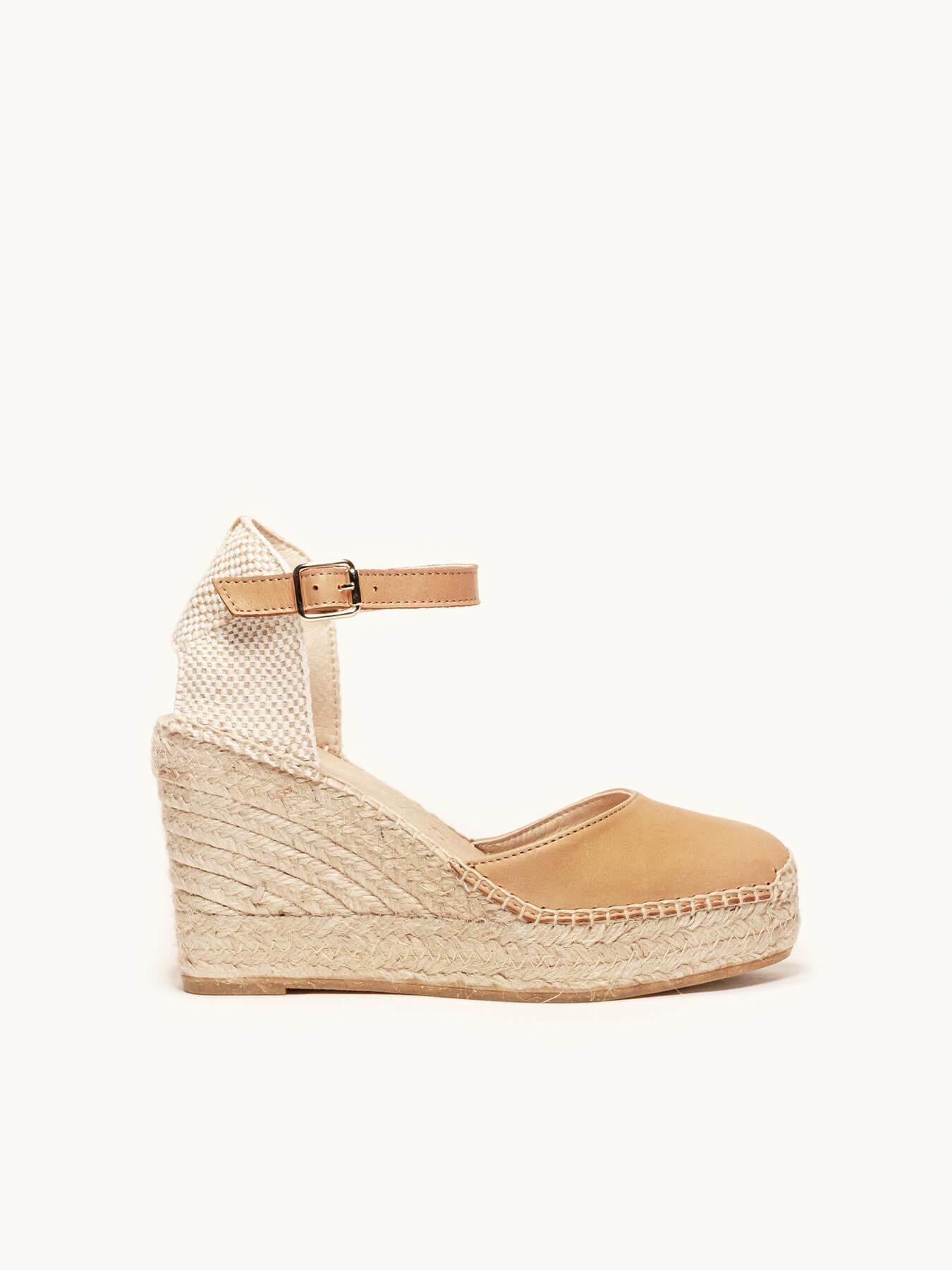 La alpargata de cuña alta Marga, es una de nuestras favoritas. Una alpargata con pulsera y escote redondo es un modelo muy versátil, ideal para el día a día y también para darle un toque muy chic a los looks más especiales. Las alpargatas con cuña y pulsera se sujetan muy bien al tobillo, irás súper cómoda durante todo el día.