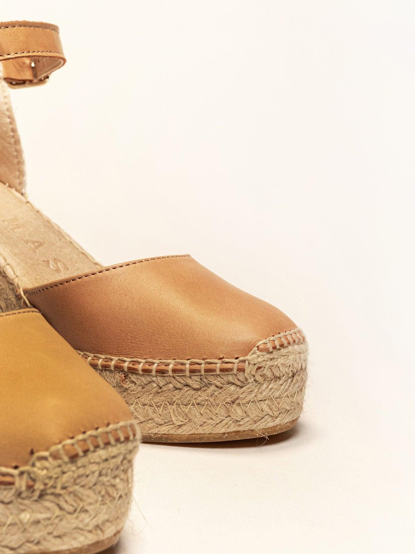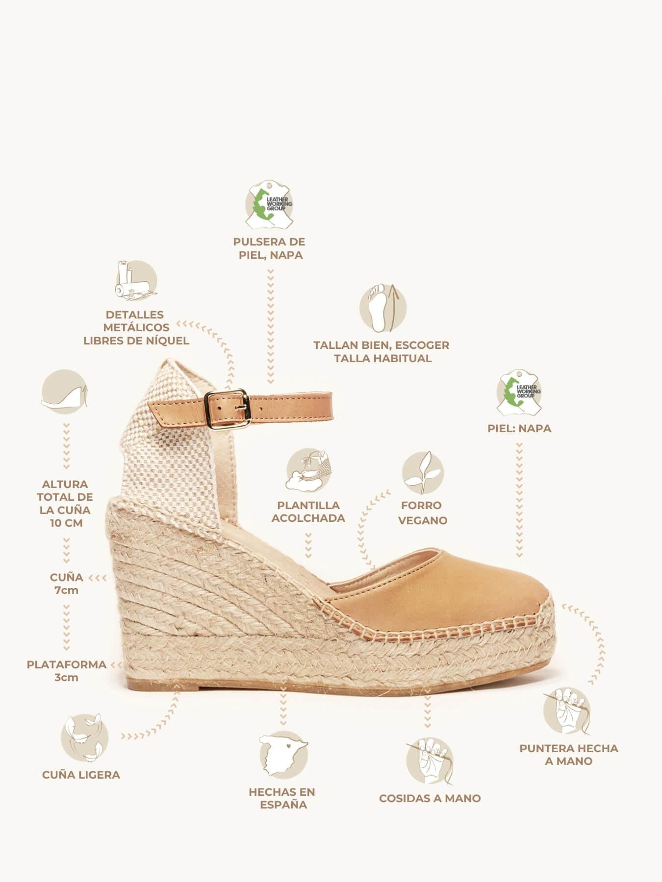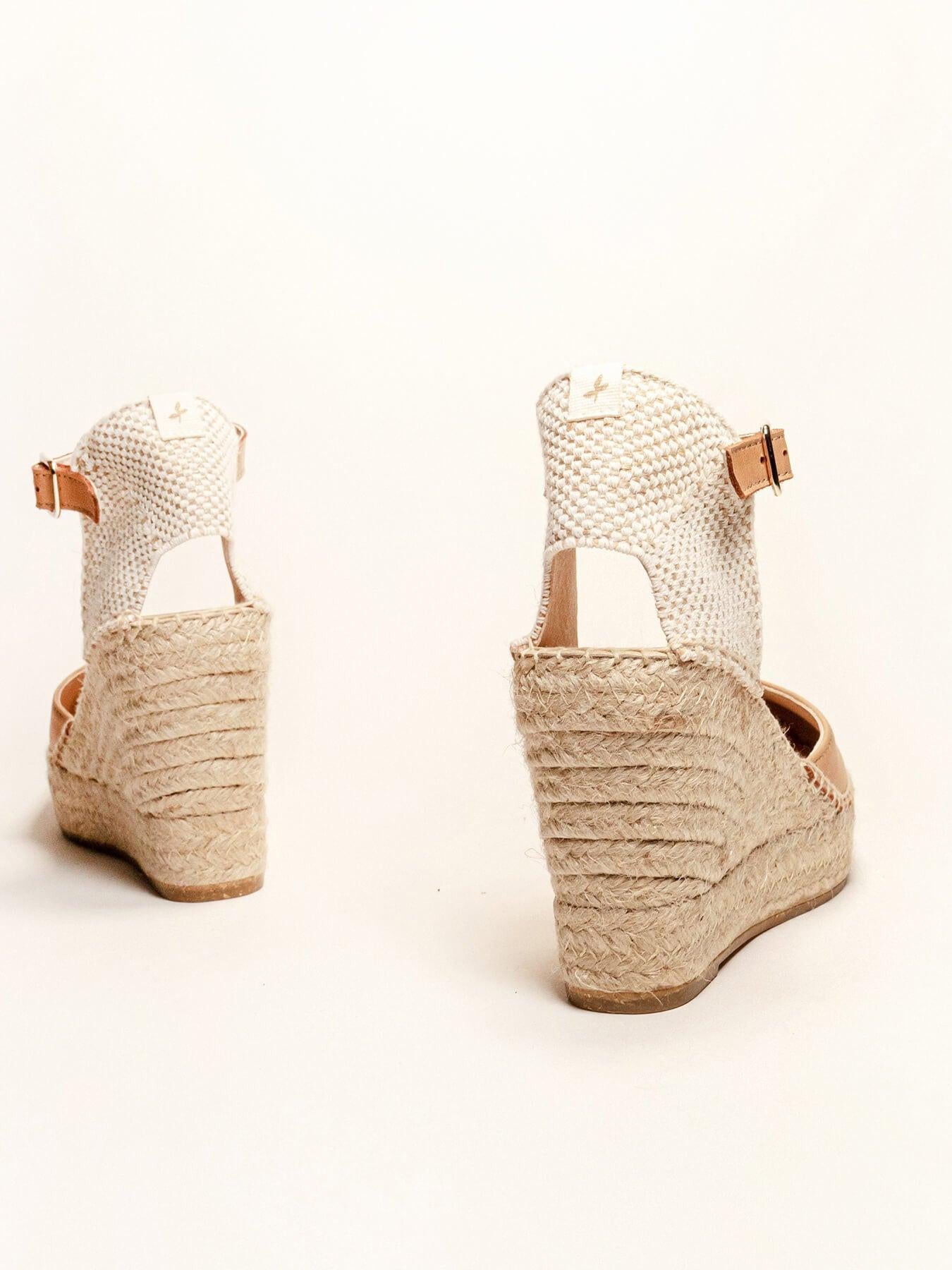 - Cuña de trenza de yute natural con suela de goma reciclada mezclada con fibras naturales