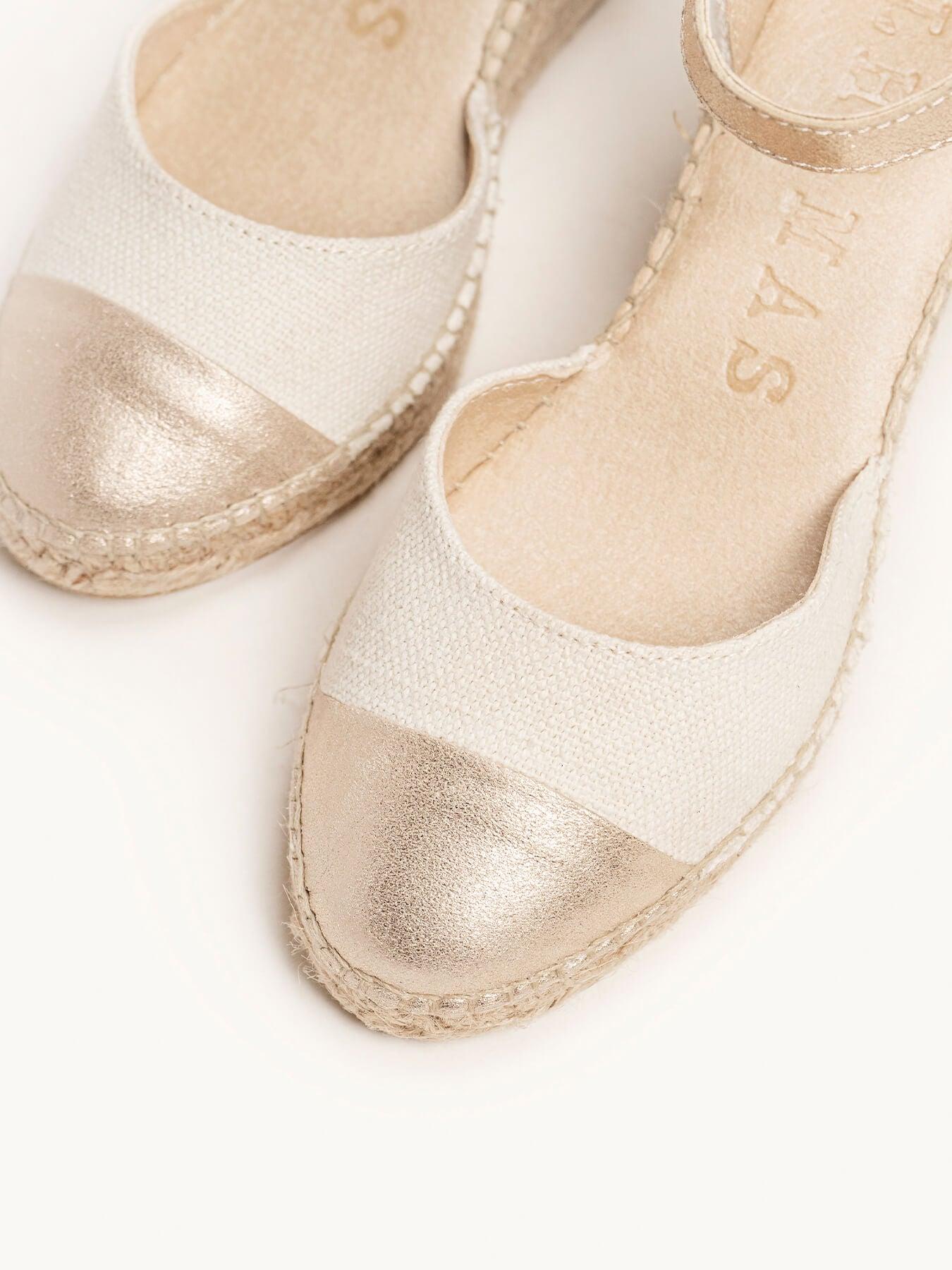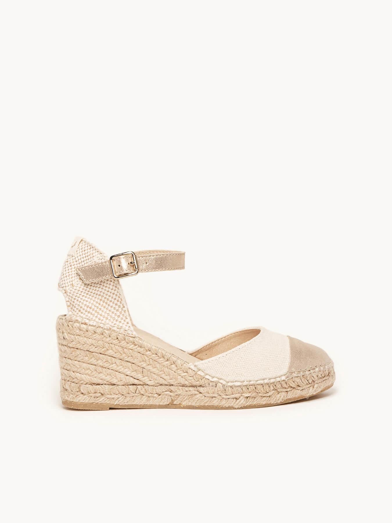 La alpargata de cuña media Marga, es una de nuestras favoritas. Una alpargata con pulsera y escote redondo es un modelo muy versátil, ideal para el día a día y también para darle un toque muy chic a los looks más especiales. Las alpargatas con cuña y pulsera se sujetan muy bien al tobillo, irás súper cómoda durante todo el día.