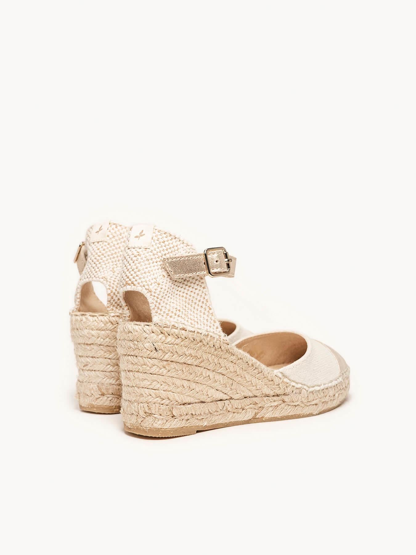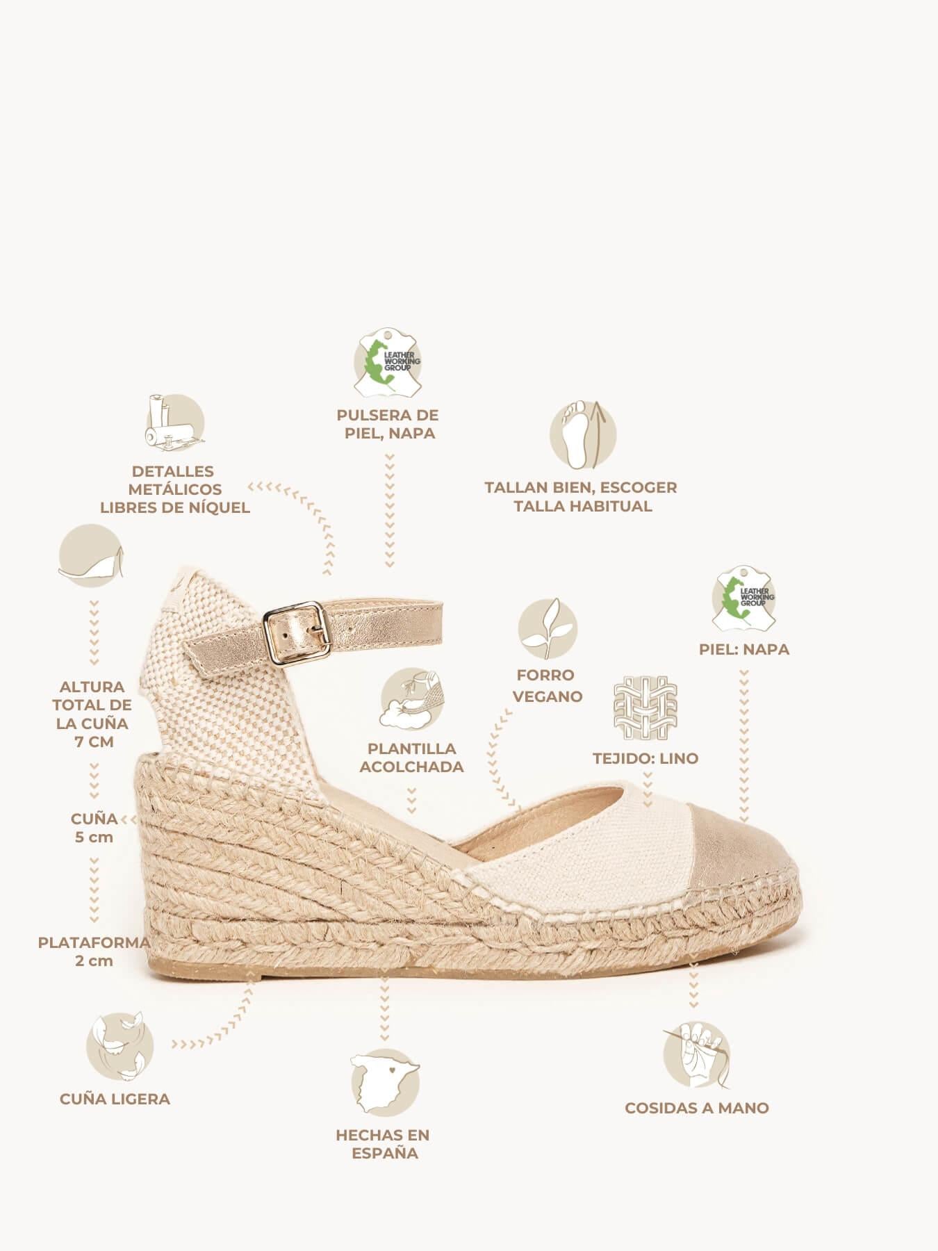 - Cuña de trenza de yute natural con suela de goma reciclada mezclada con fibras naturales