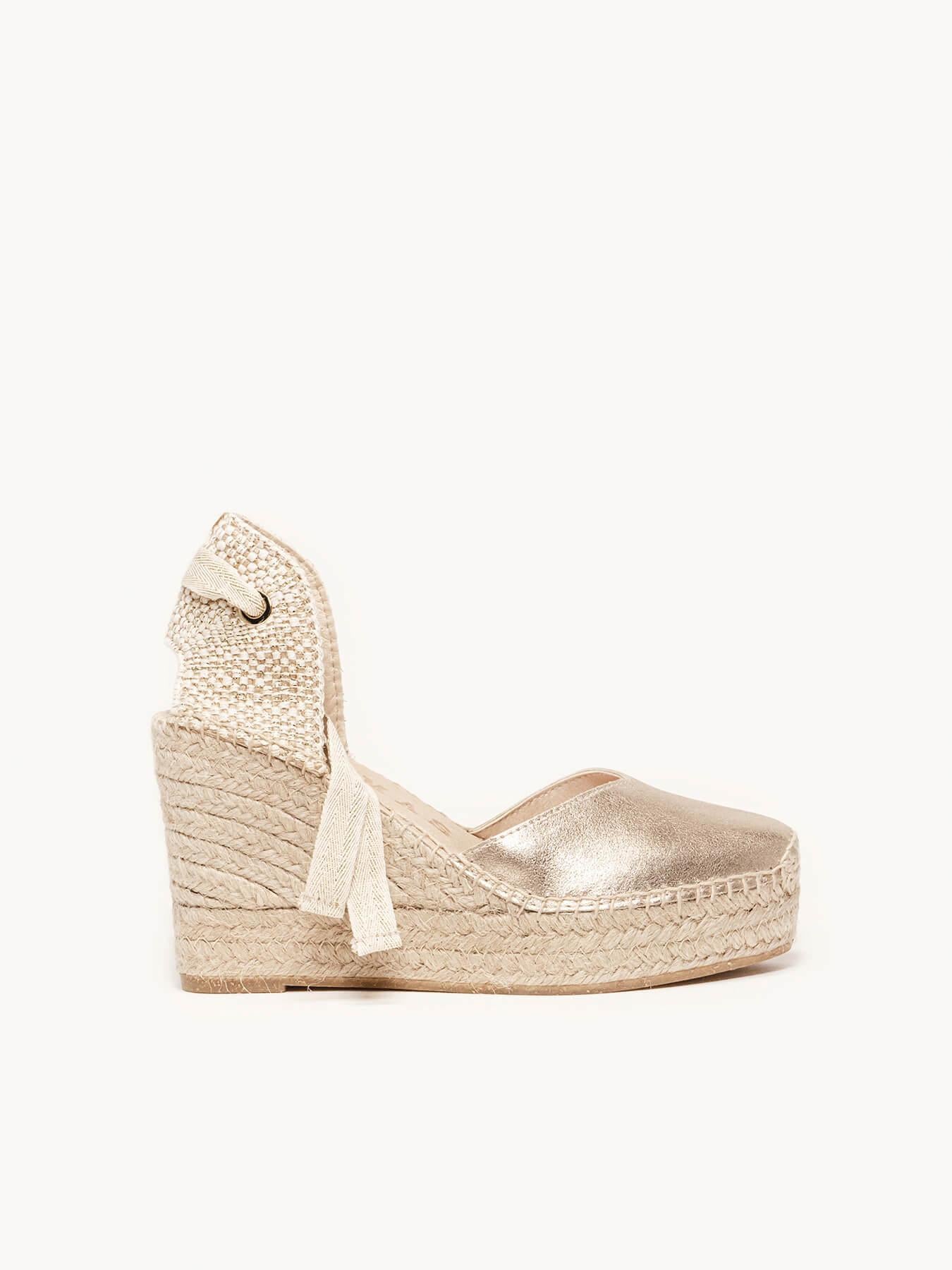 - Cuña de trenza de yute natural con suela de goma reciclada mezclada con fibras naturales