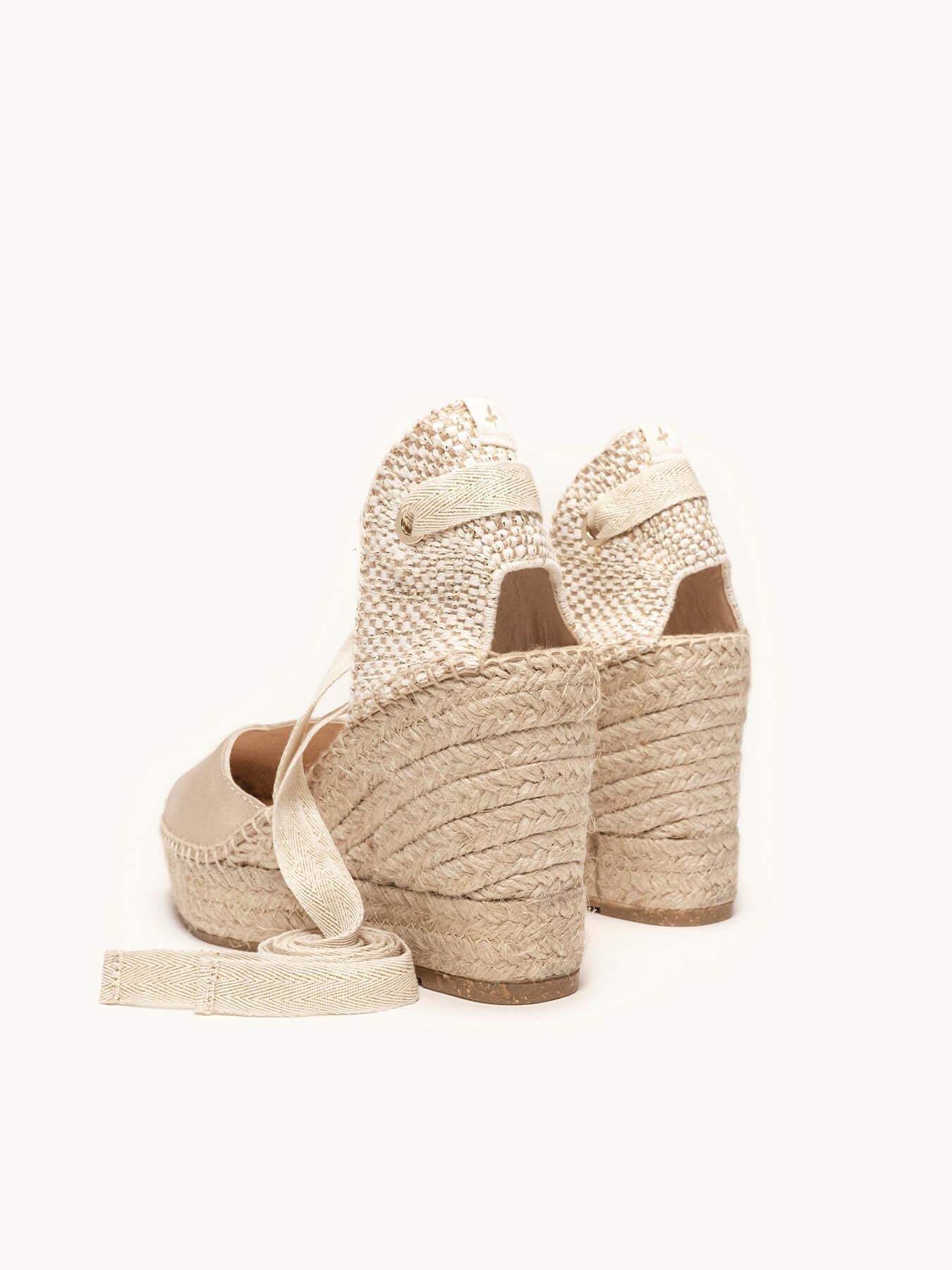 La alpargata de cuña alta Romero, es nuestro modelo más icónico. Una alpargata valenciana de escote corazón con cintas que podrás llevar con tus looks especiales y también con los del día a día. Podrás darle un toque especial porque las cintas se pueden cambiar.