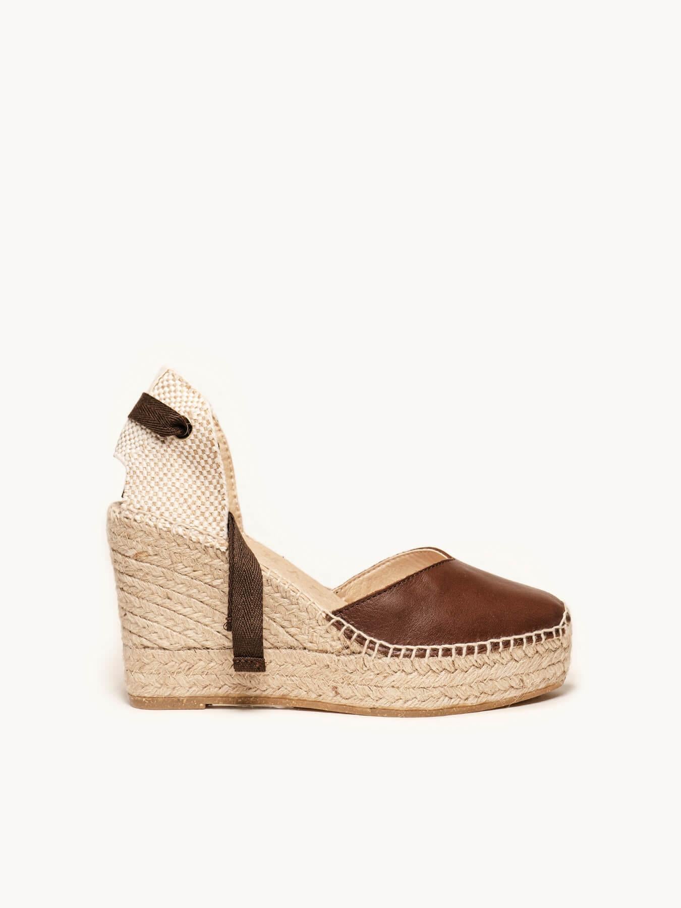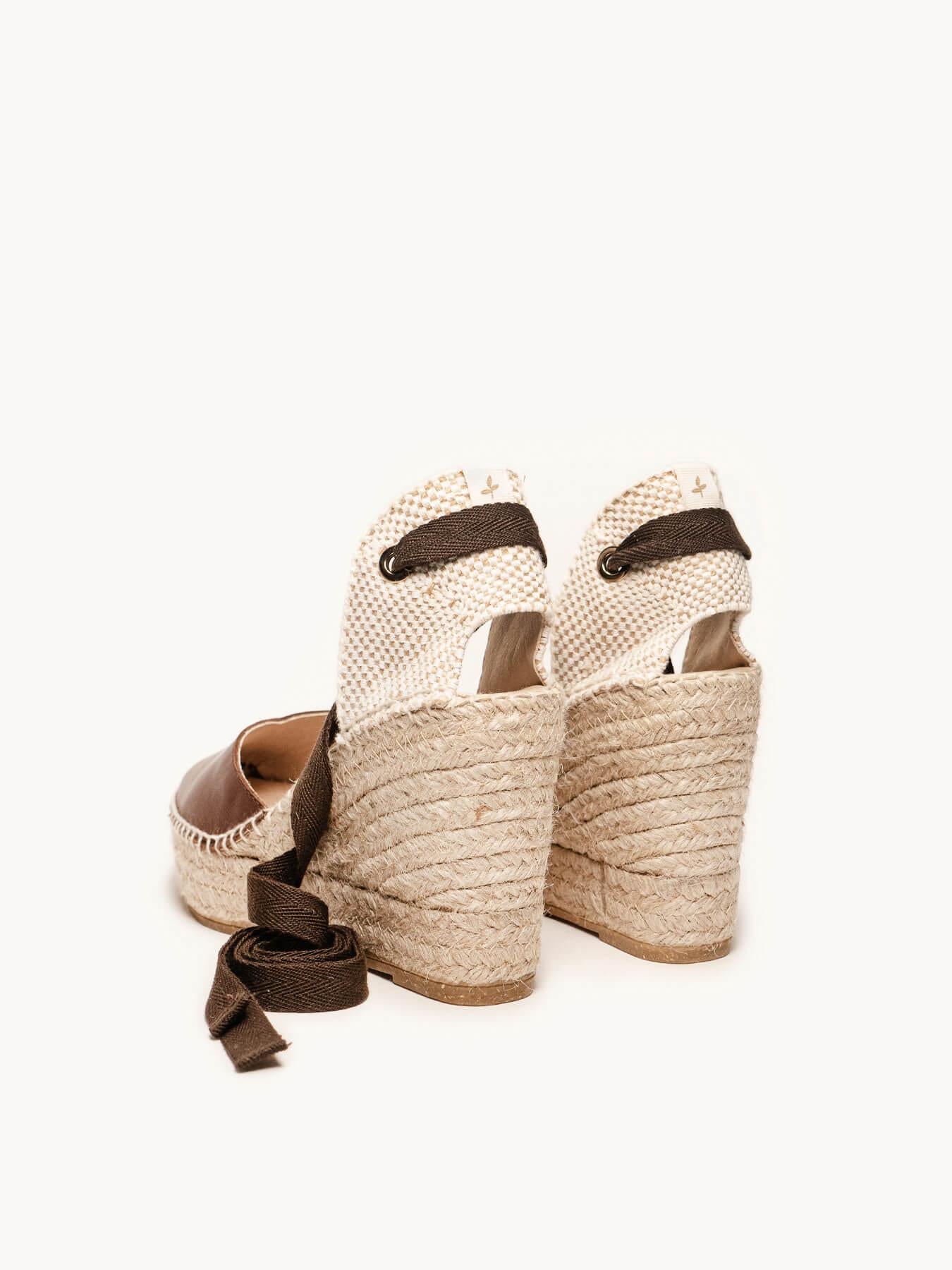 - Cuña de trenza de yute natural con suela de goma reciclada mezclada con fibras naturales
