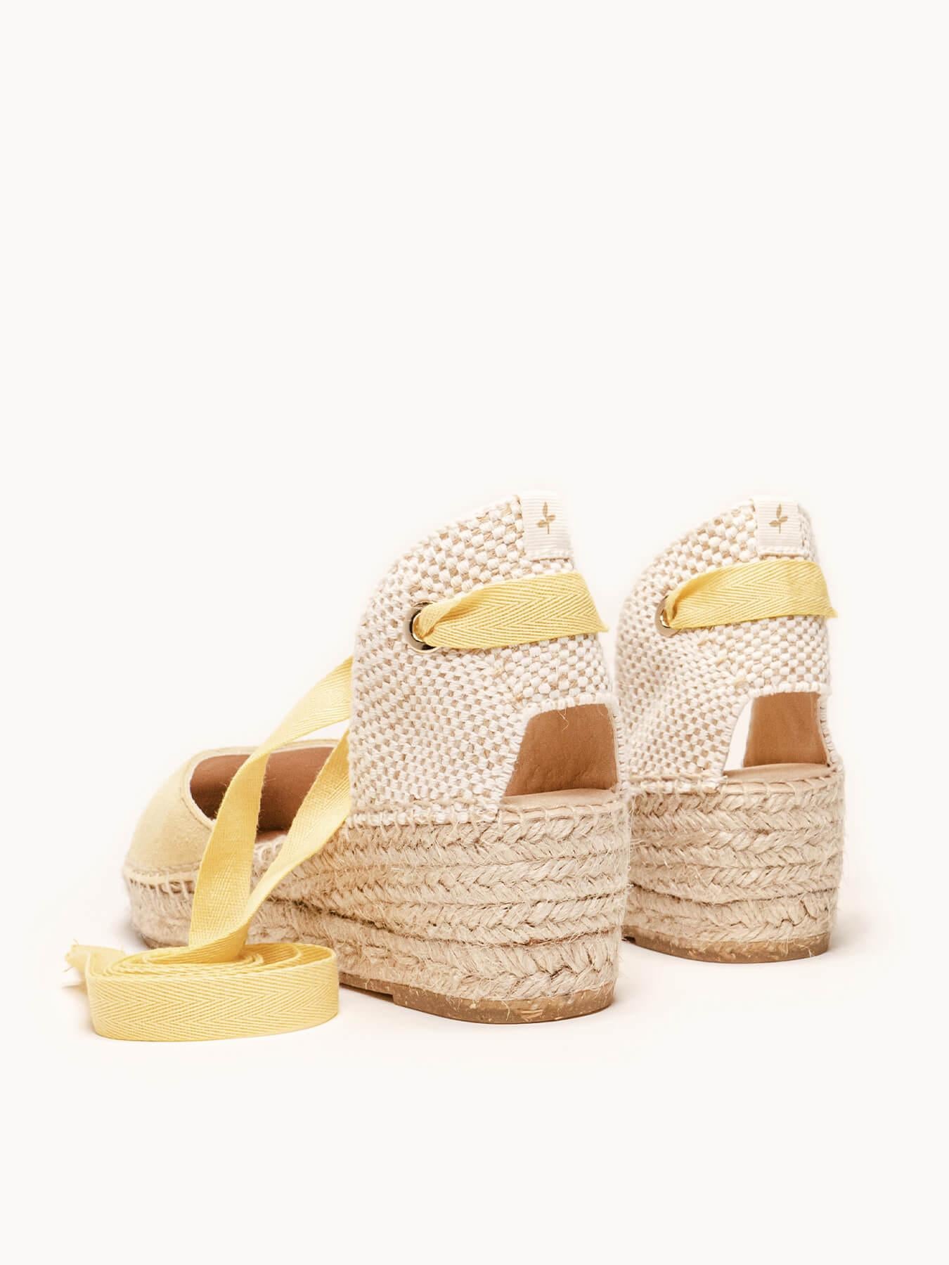 La alpargata de cuña baja Romero, es nuestro modelo más icónico. Una alpargata valenciana de escote corazón con cintas que podrás llevar con tus looks especiales y también con los del día a día. Podrás darle un toque especial porque las cintas se pueden cambiar.