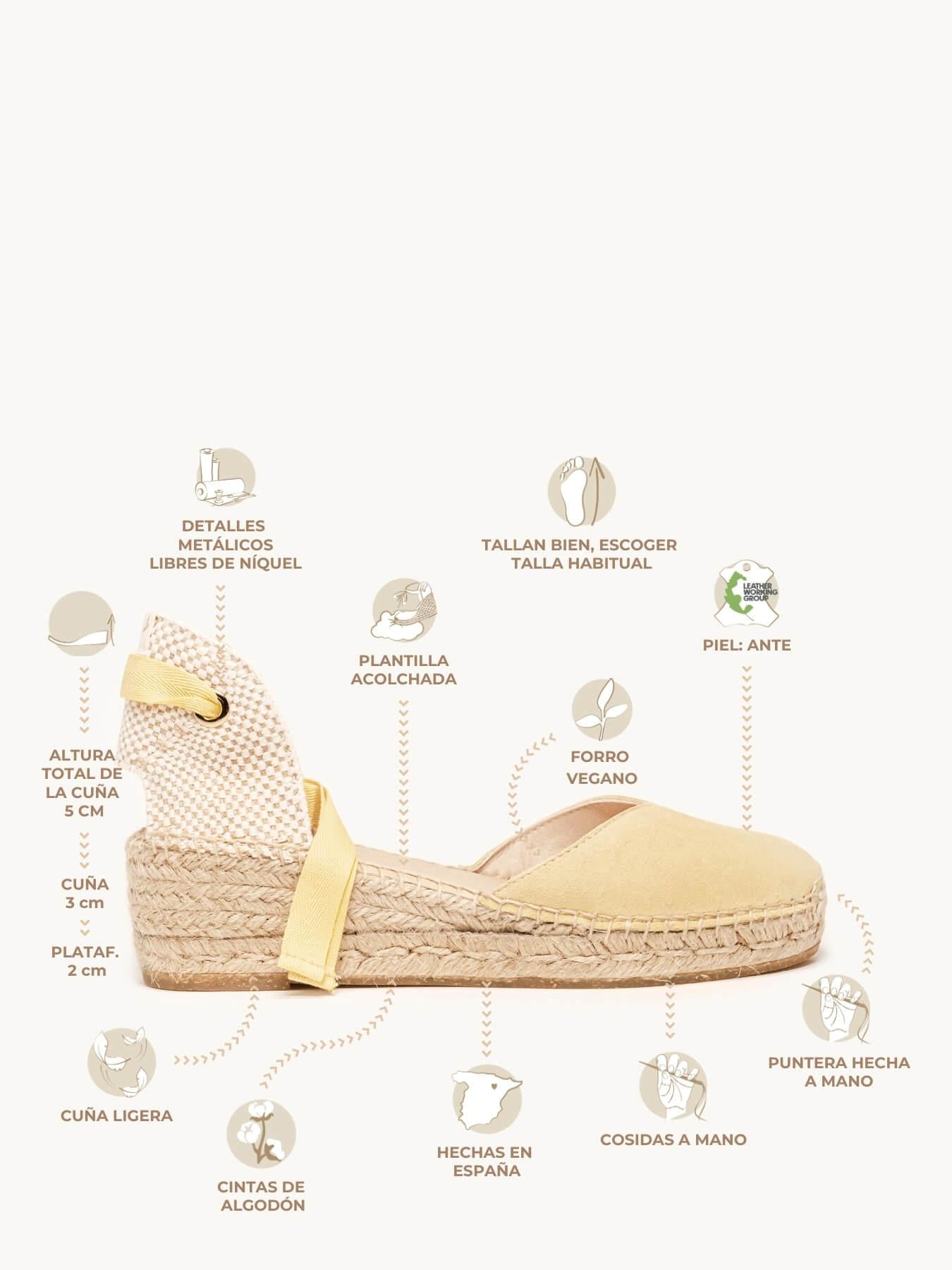 - El Ante de la alpargata Romero está certificado por el Leather Working Group (una organización que promueve prácticas ambientales sostenibles)