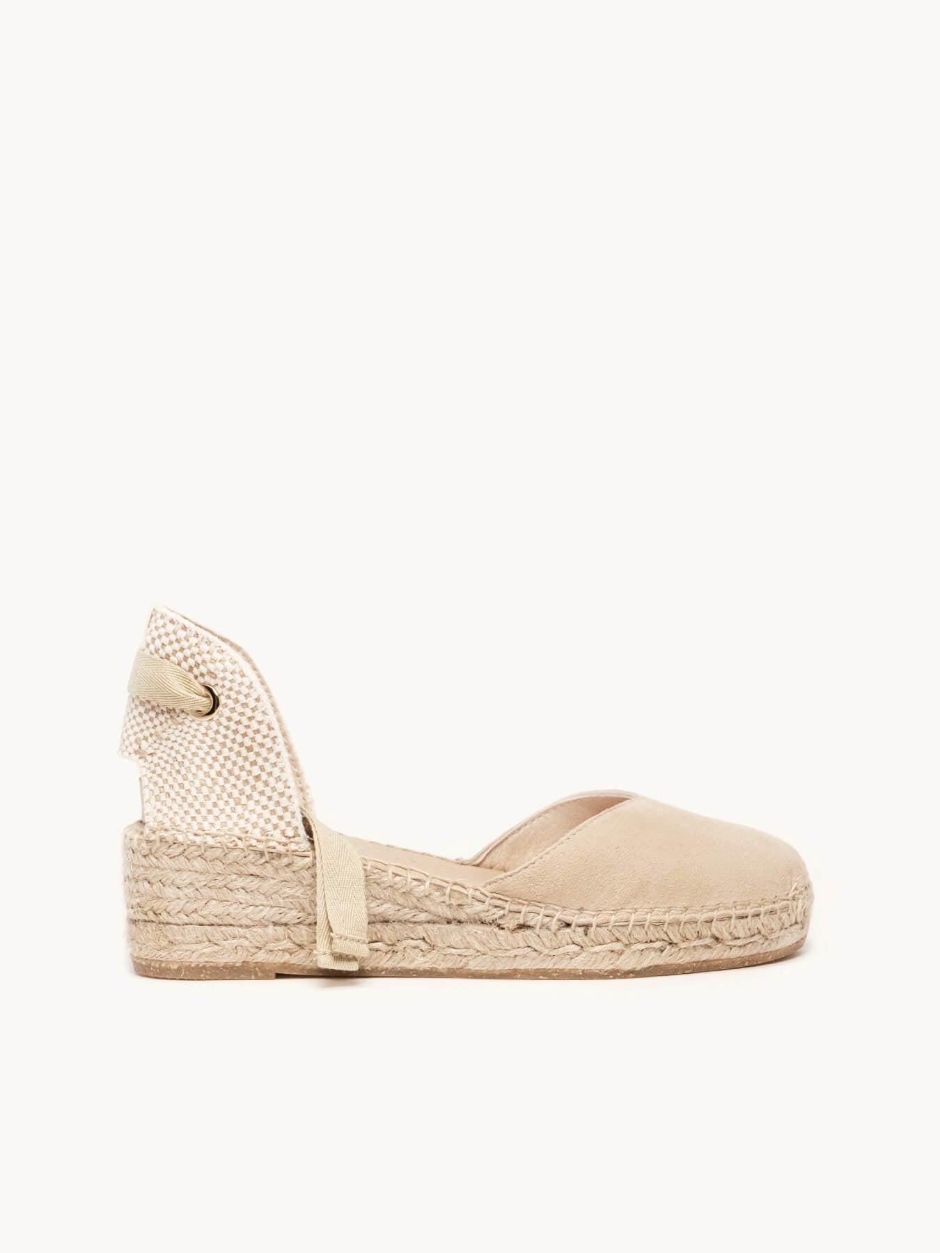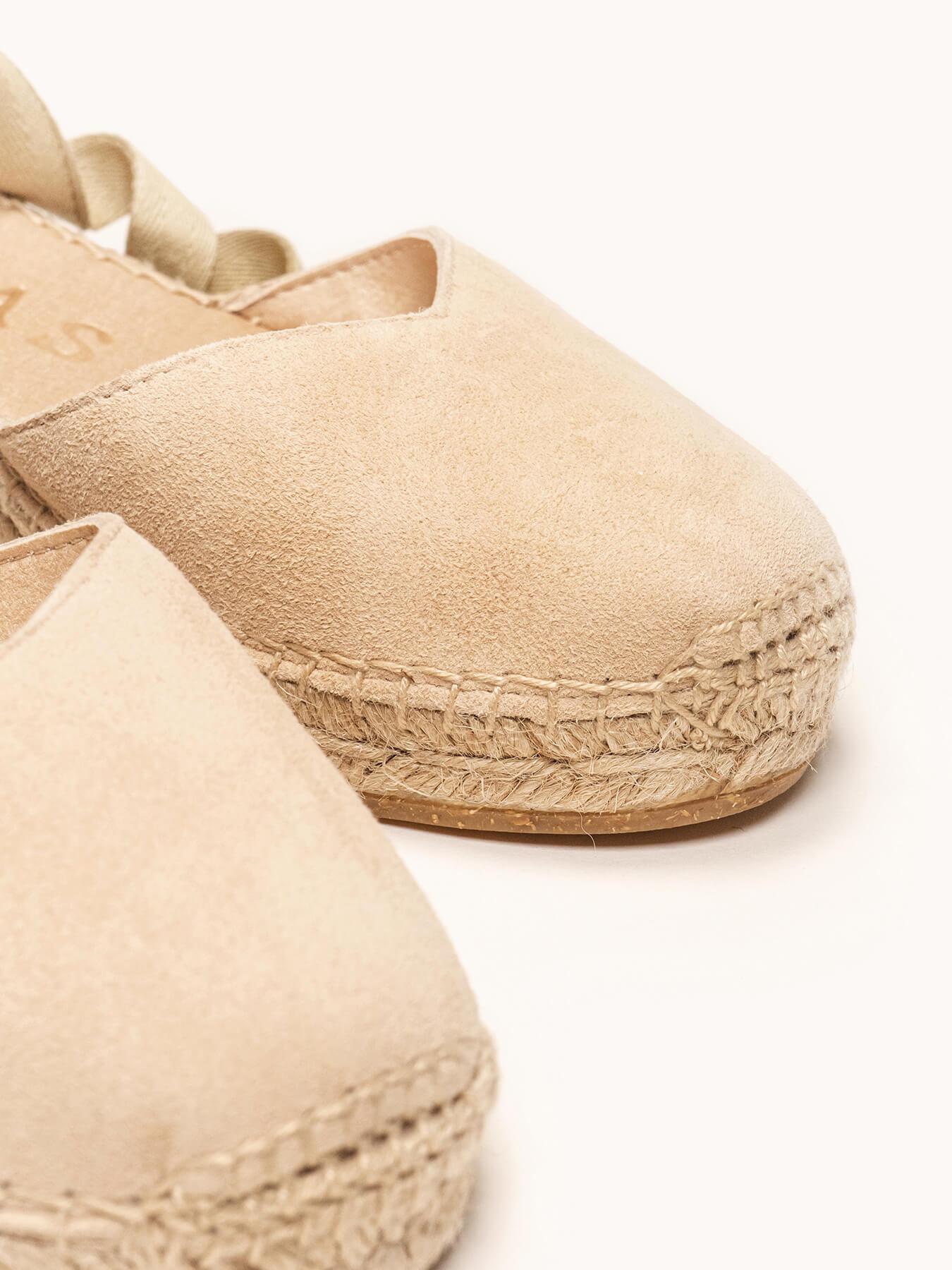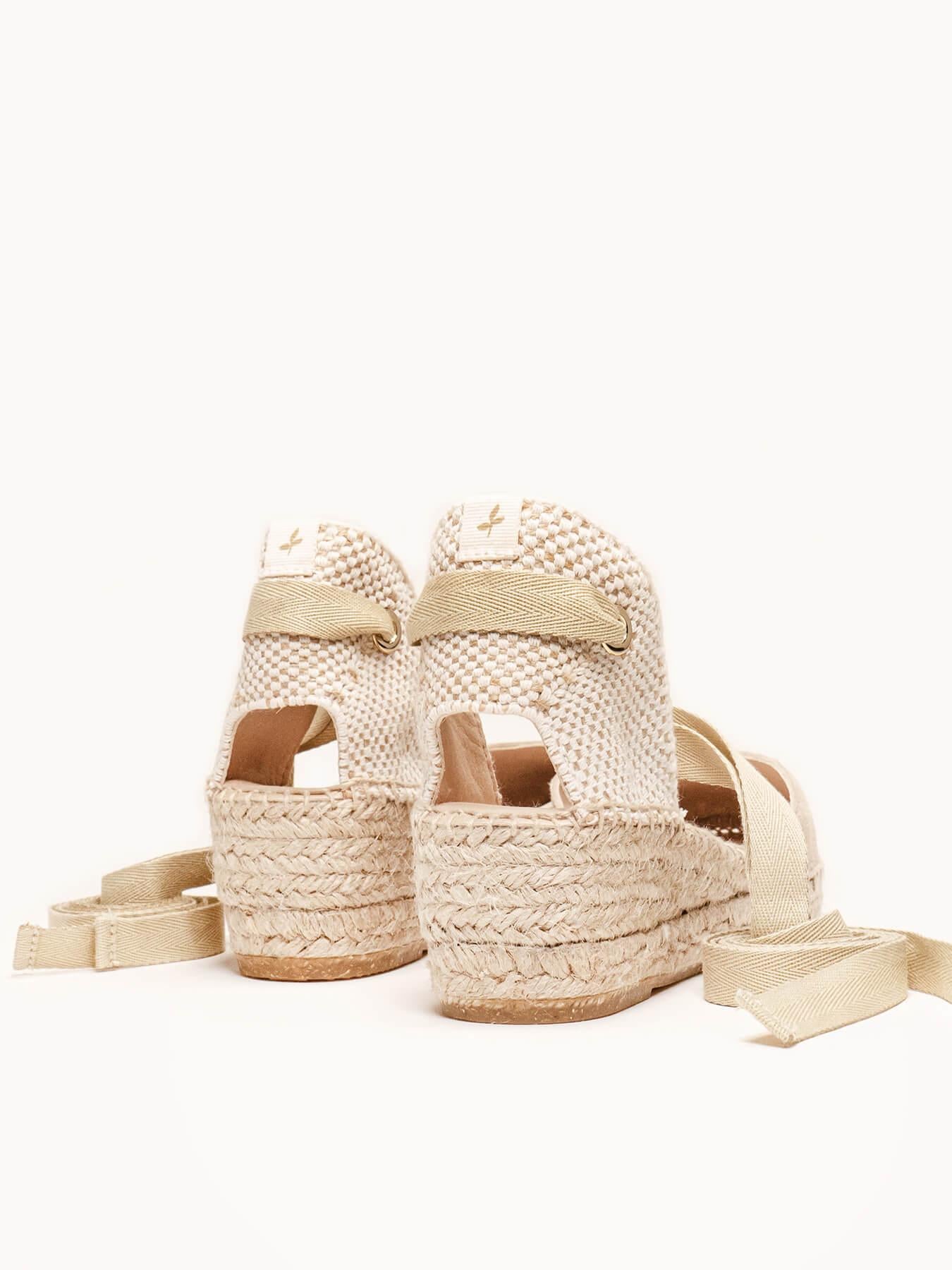 - Cuña de trenza de Yute natural con suela de goma reciclada mezclada con fibras naturales.