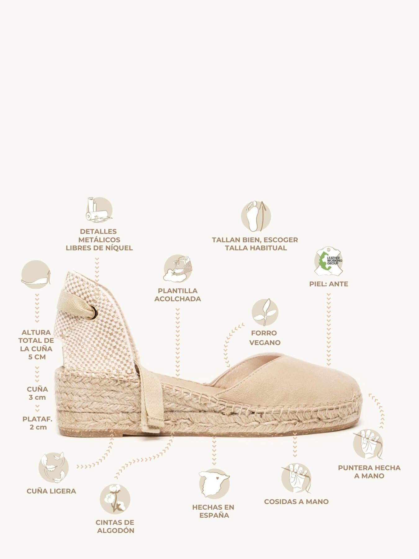 - El Ante de la alpargata Romero está certificado por el Leather Working Group (una organización que promueve prácticas ambientales sostenibles)