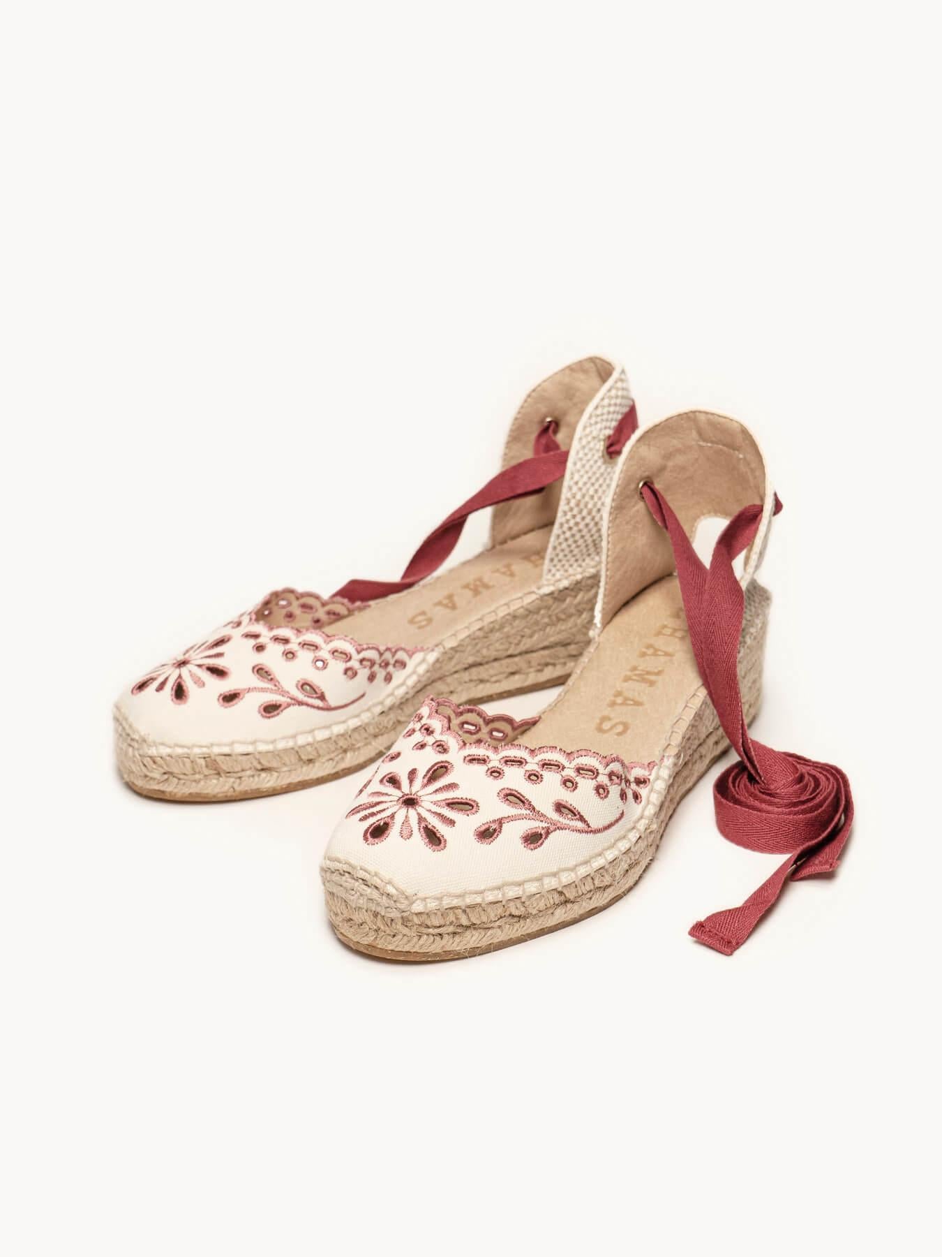 La alpargata de cuña baja Romero, es nuestro modelo más icónico. Una alpargata valenciana de escote corazón con cintas que podrás llevar con tus looks especiales y también con los del día a día. Podrás darle un toque especial porque las cintas se pueden cambiar.