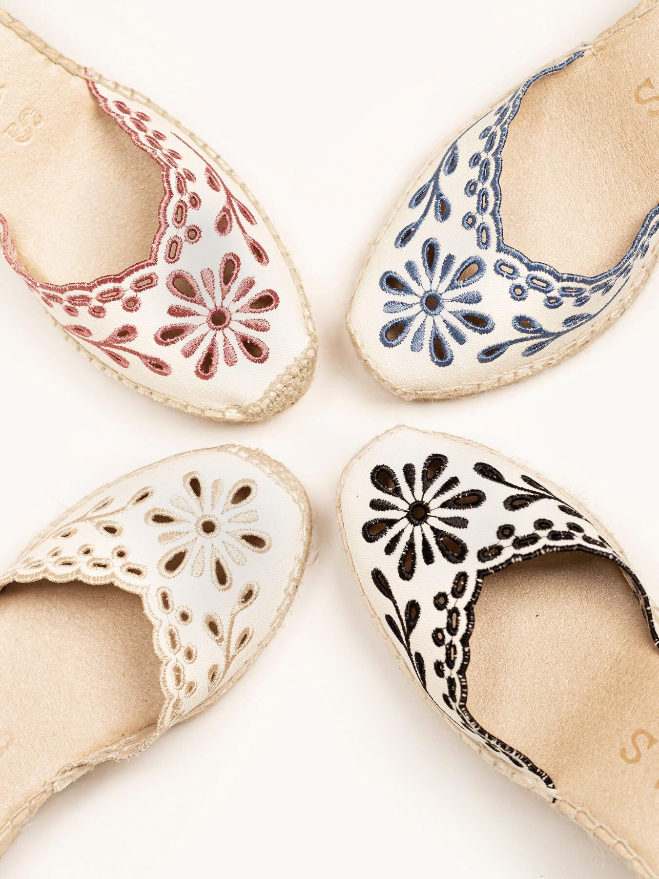 - El tejido bordado de la alpargata Romero es de algodón orgánico tintado con tintes 100% naturales.