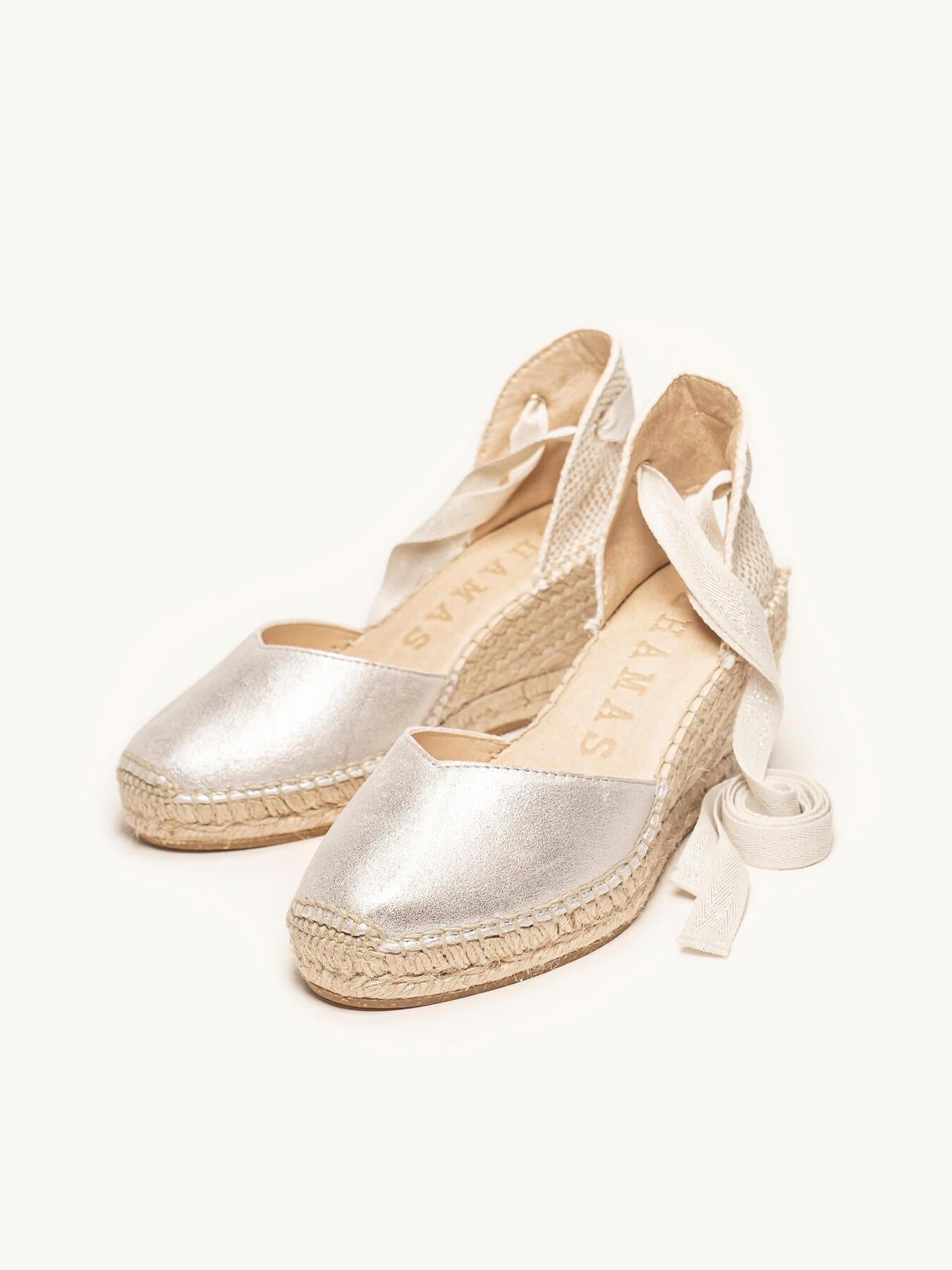 La alpargata de cuña media Romero, es nuestro modelo más icónico. Una alpargata valenciana de escote corazón con cintas que podrás llevar con tus looks especiales y también con los del día a día. Podrás darle un toque especial porque las cintas se pueden cambiar.