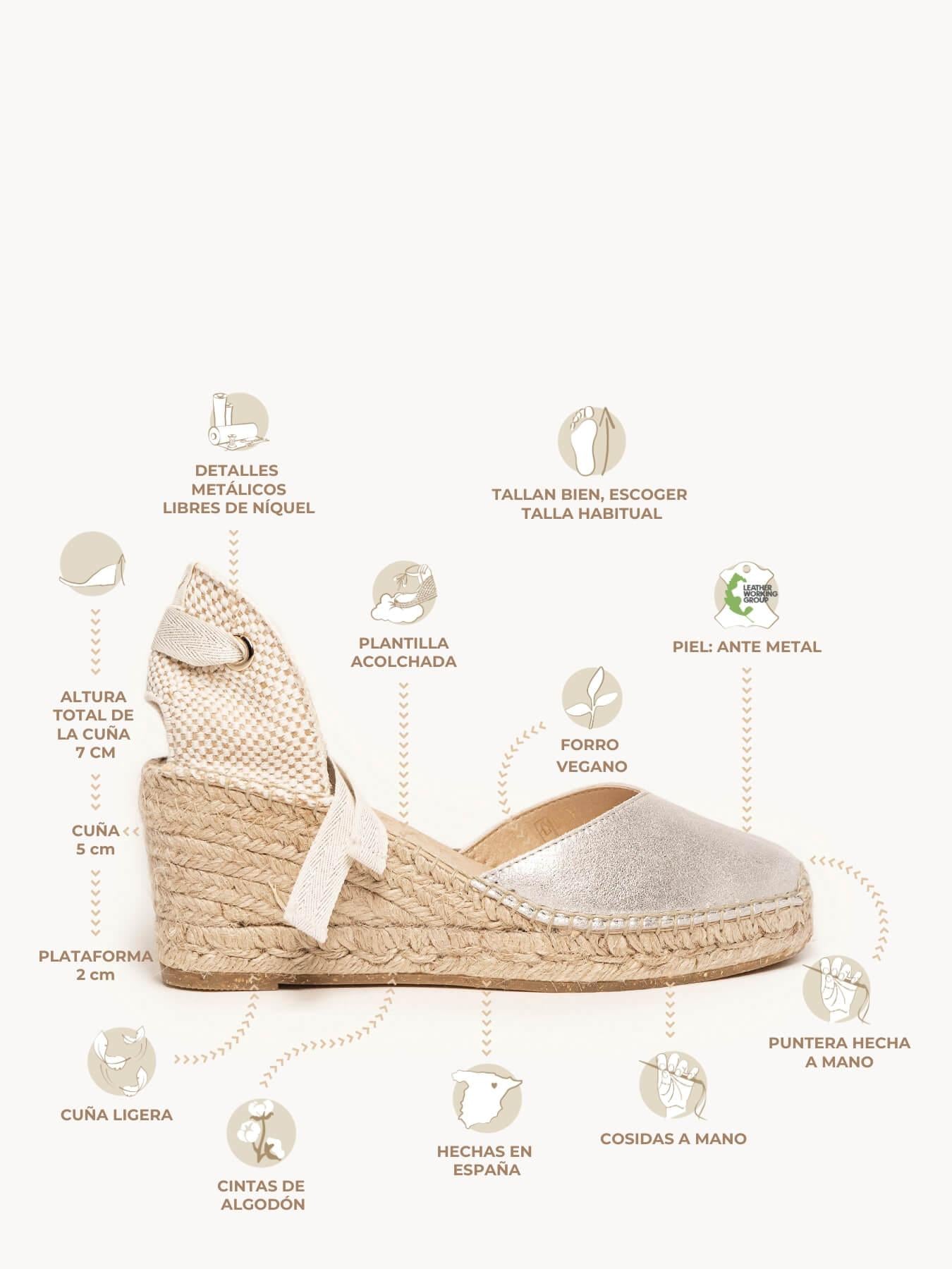 - El Ante Metal de la alpargata Romero está certificado por el Leather Working Group (una organización que promueve prácticas ambientales sostenibles)