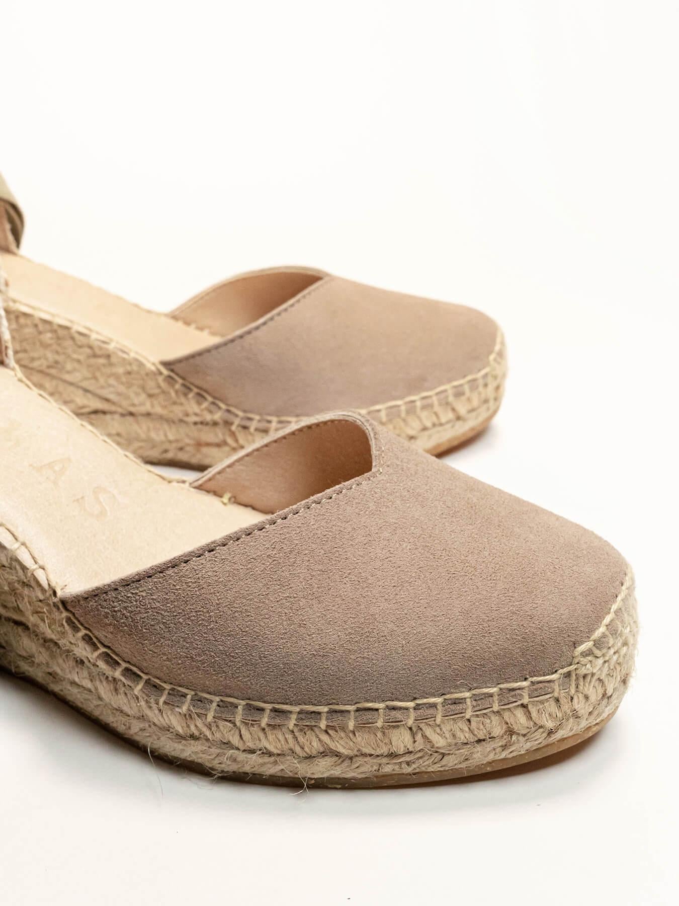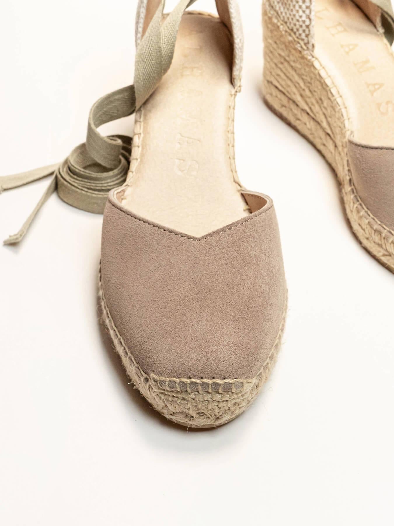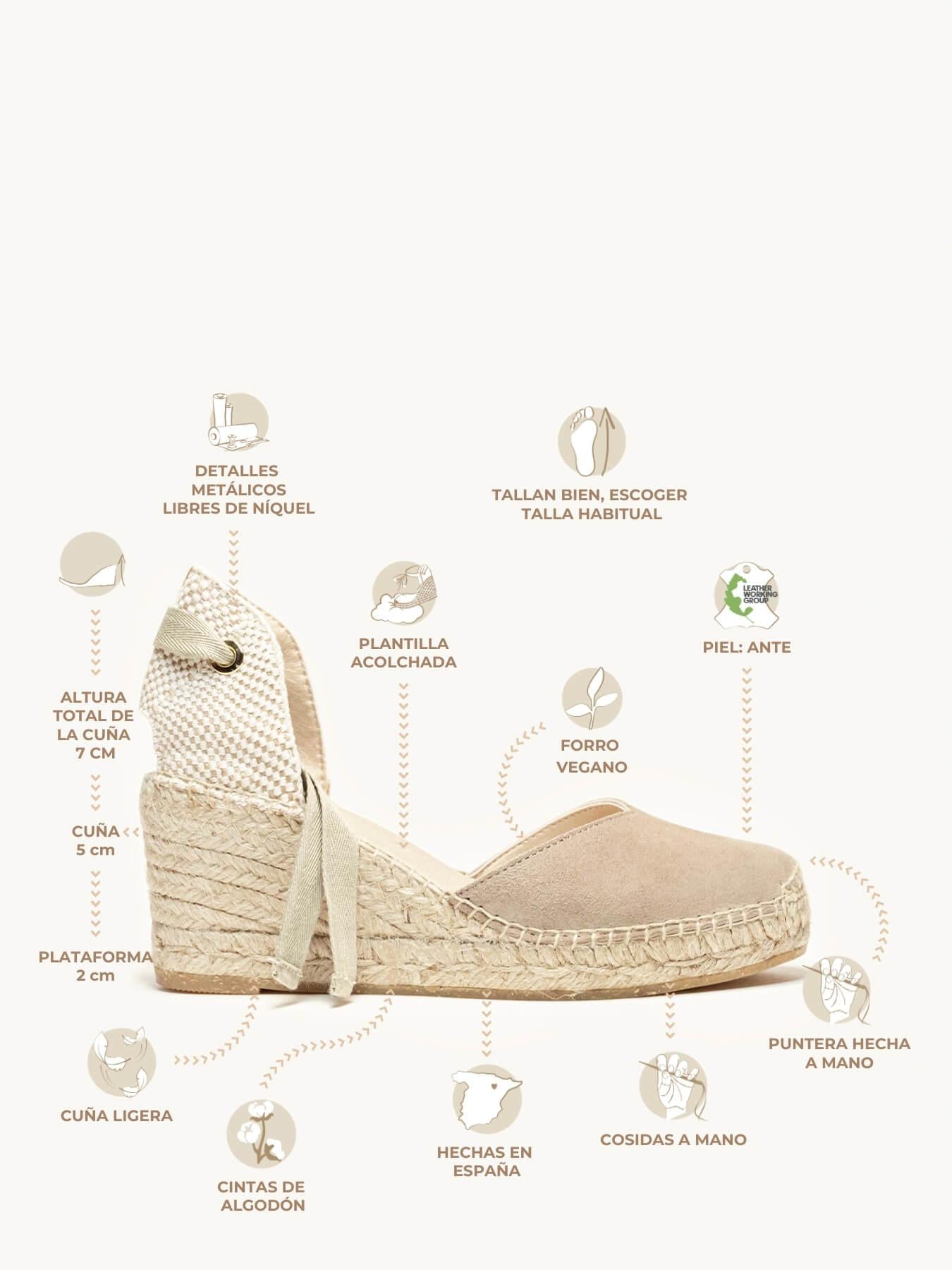 - Cuña de trenza de Yute natural con suela de goma reciclada mezclada con fibras naturales.