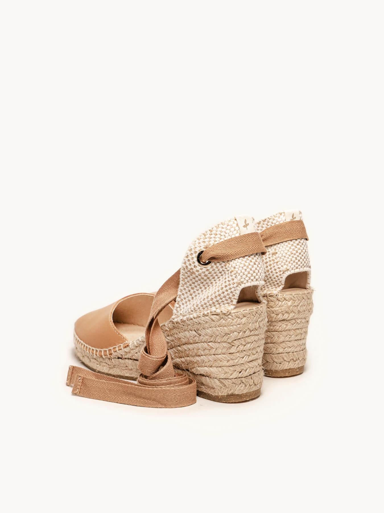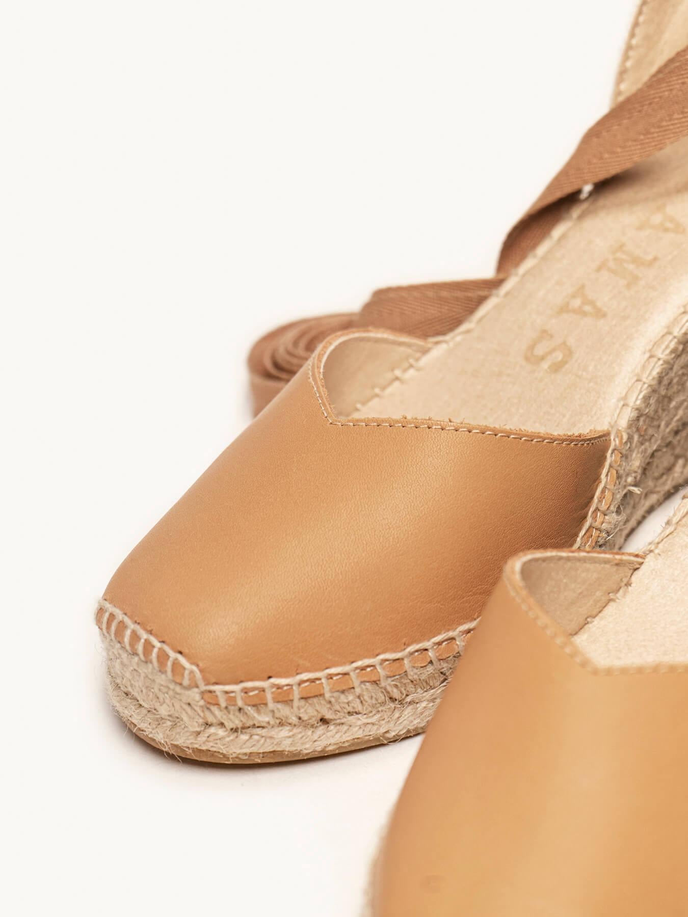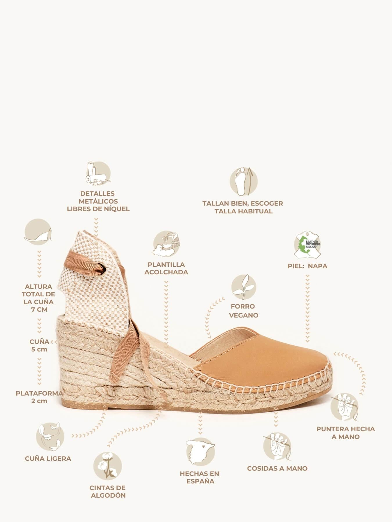 - Cuña de trenza de yute natural con suela de goma reciclada mezclada con fibras naturales